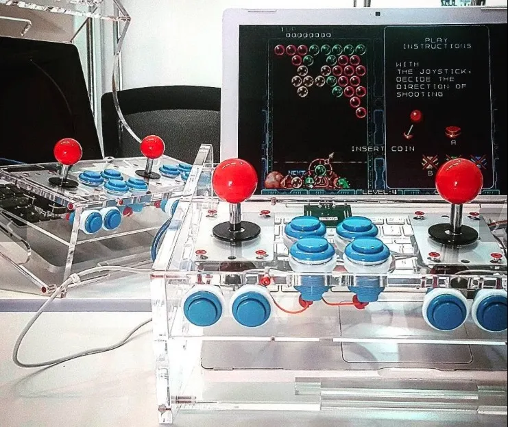 Come potete vedere dalle immagini per ognuno dei due giocatori è disponibile un joystick con switch, 4 bottoni nella parte superiore e due nella parte frontale: tutti hanno una efficiente risposta meccanica e rendono assolutamente coinvolgente il gameplay dei titoli arcade classici e ovviamente anche dei giochi più recenti.