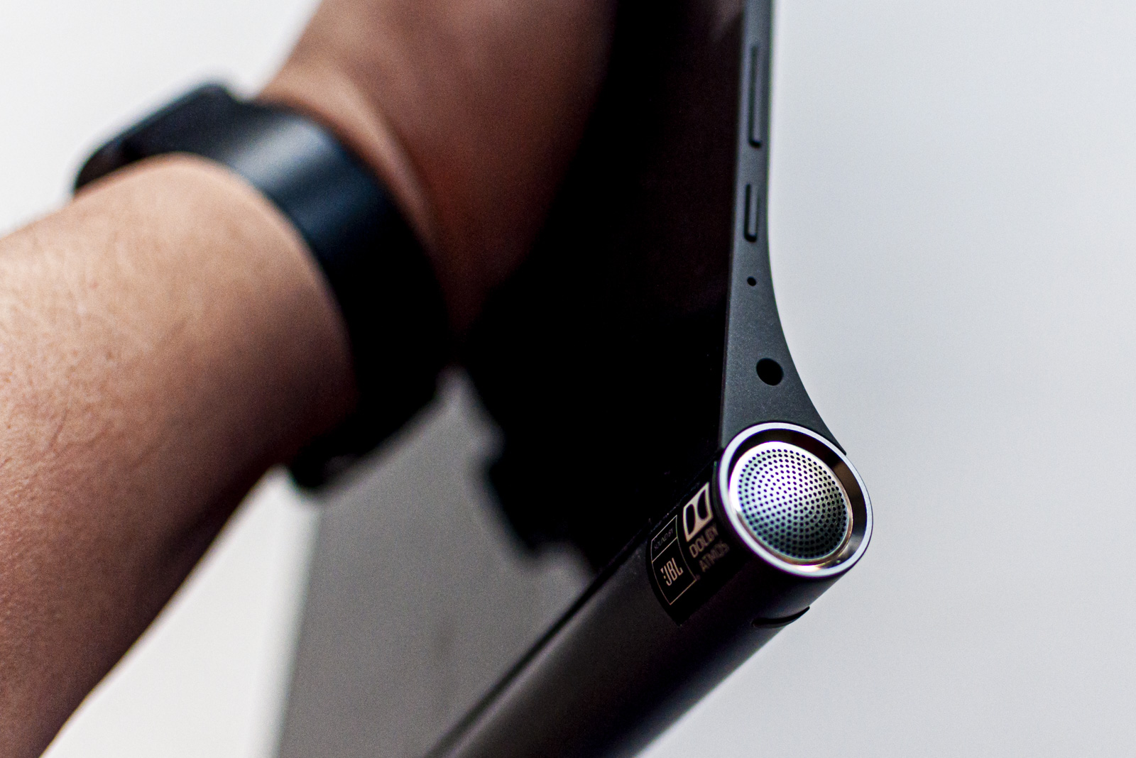 I connettori e i pulsanti sono posti lateralmente ma è la parte in basso del tablet a fornire gli spunti migliori. Due altoparlanti JBL da 2W con Dolby Atmos offrono un ingrossamento rotondo che fa capire come il sistema audio di questo prodotto sia particolarmente curato.