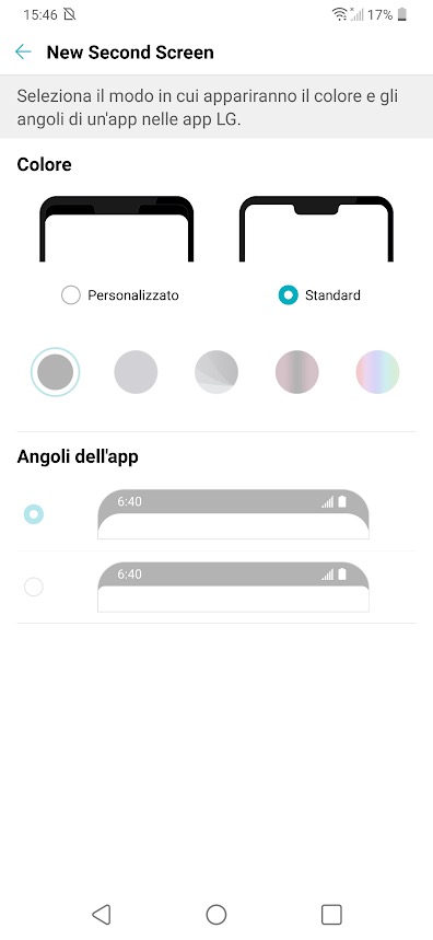 LG G7 è dotato di un pannello 19.5:9, con diagonale da 6,1 pollici. Sulla parte alta è presente il notch frontale, che può essere parzialmente nascosto tramite software. Purtroppo la soluzione non è ideale, in quanto è possibile nascondere il notch solo sulla Home, ma non sulle app terze parti, come invece avviene sul altri smartphone: semplicemente inconcepibile. Le zone intorno alla tacca possono anche essere personalizzate con colori e sfumature differenti: anche in questo caso la scelta risulta quanto meno discutibile, perché in questo modo non si fa altro che enfatizzare un notch, che in molti vorrebbero poter nascondere.