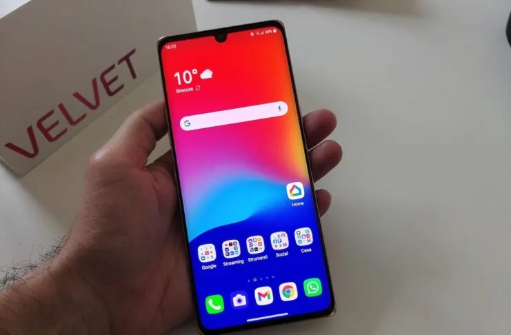 Per quanto concerne il display dell’LG Velvet, che ci ha davvero colpiti, si tratta di una unità P-OLED da 6,8 pollici con un rapporto di 20,5: 9 e una risoluzione di 2.460 x 1.080. Davvero bello, con colori e ricchi. I lati del display sono curvi, il che aiuta il terminale ad avere un aspetto moderno, che quasi rende il dispositivo ancor più sottile di quanto già non sia. Come già anticipato è presente un lettore di impronte digitali ottico sotto lo schermo, che purtroppo non riesce a risultare tra i più veloci e precisi di sempre. Lo sblocco, purtroppo, è uno degli elementi negativi del terminale, considerando che non è presente in alcun modo neppure il Face ID. Insomma, l’abbinata touch ID non troppo reattivo con l’assenza del Face ID, rende a volte lento lo sblocco stesso.