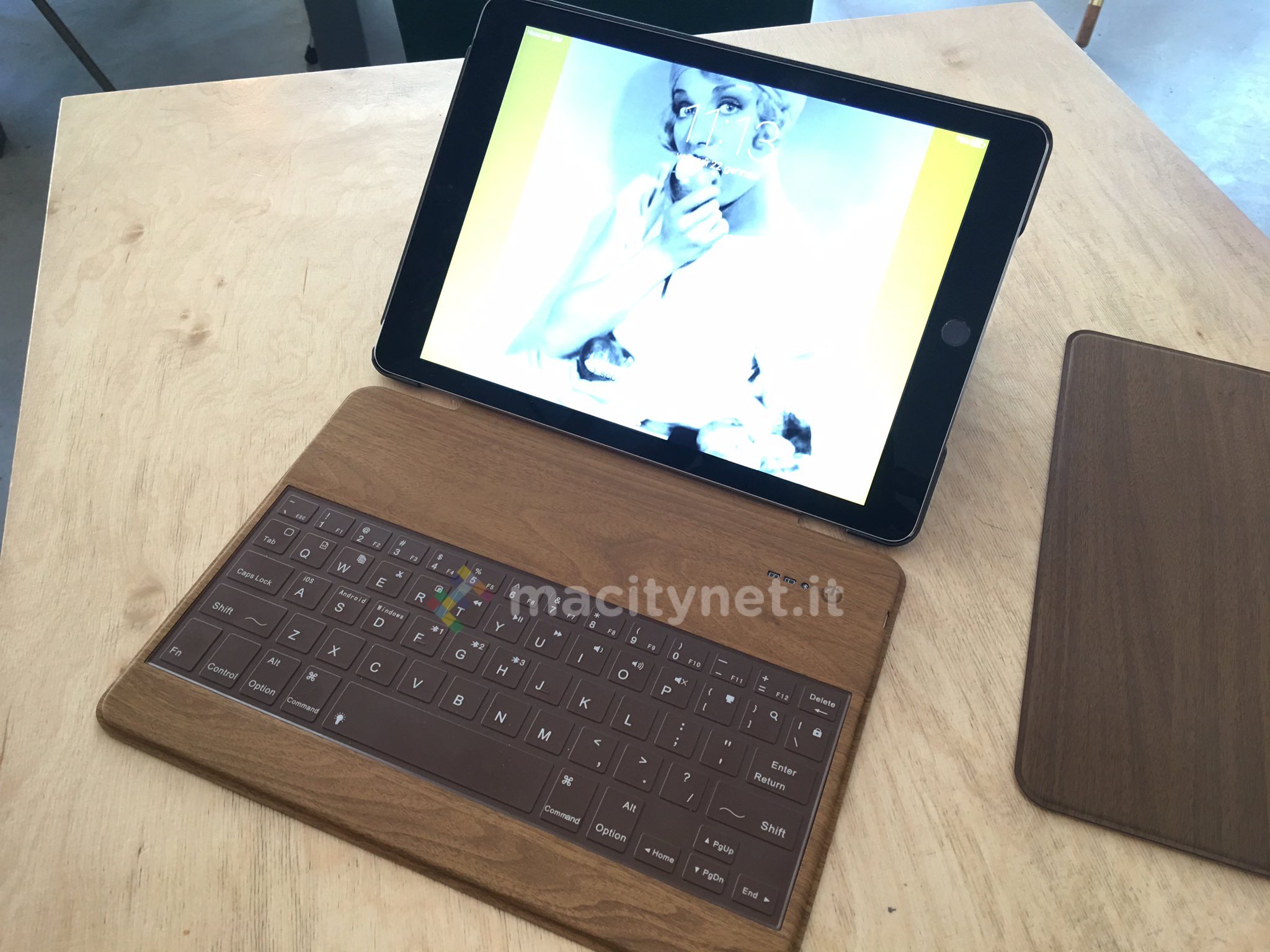 Poi ci sono le due cover superiori: quella normale e quella da tastiera, in effetti estremante sottile, con una buona autonomia di batteria (si ricarica con una micro usb) e tasti gommosi e privi di escursione, alquanto discutibili se si vuole scrivere parecchio. La tastiera ha la particolarità di poter essere programmata con profili Bluetooth diversi e quindi usata anche al di là dal suo rapporto con iPad Air ad esempio anche con Mac e Windows oppure con tablet e telefoni Apple e Android.