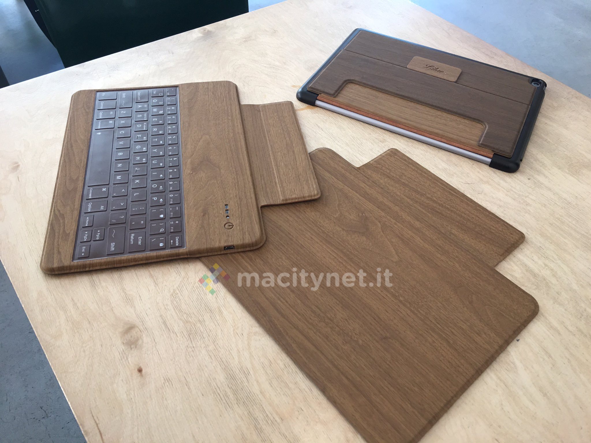 La cover Libre Keyboard Folio nell’edizione Kickstarter è composta di tre elementi: un sotto che avvolge e protegge l’iPad Air 1 e 2, dotato anche di una parte estensibile per fare da supporto in modalità panorama. Una cover magnetica senza tasti, da usare quando si vuole il massimo del minimo spessore, e quella con tastiera.