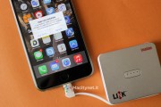 Il Link, come accennato, è prima di tutto una memoria di massa insieme che si collega alla porta Lightining dell’iPhone, dell’iPad o dell’iPod touch. Il suo scopo è essenzialmente quello di spostare documenti per liberare la memoria del dispositivo oppure collocare al suo interno file, siano essi di Word, PDF, foto e così via. Questa operazione di solito si può fare con speciali applicazioni e dispositivi che si collegano via Wi-Fi all’iPhone o iPad; il Link invece sfrutta il connettore Lightning, semplificando tutte le procedure.