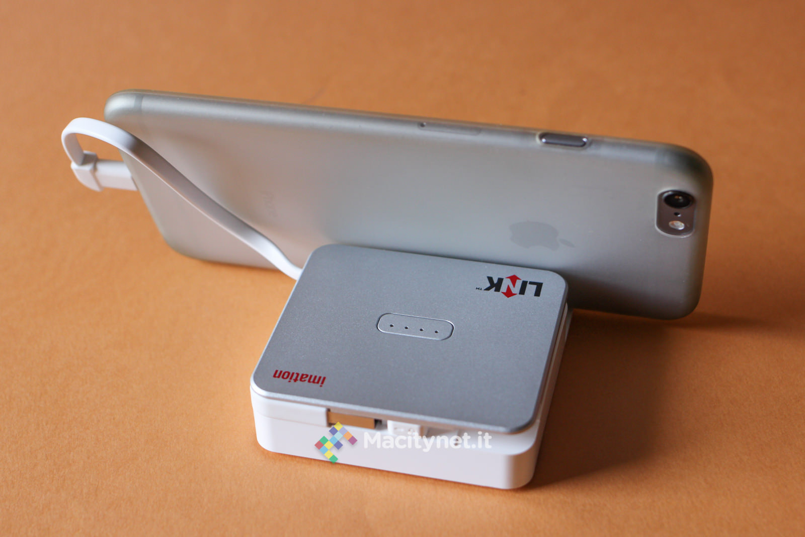 Se volete espandere la memoria dell’iPhone in mobilità risparmiando peso ed ingombro, il LINK è l’accessorio giusto. Pesa poco, si infila tranquillamente in tasca ed ha tutto ciò che serve per aggiungere (in base al modello) 16, 32 o 64 GB al proprio dispositivo. Come spiegato, nella cassa sono integrati i cavi USB e Lightning per il collegamento a iPhone e computer, quindi è sufficiente questa piccola scatoletta per avere tutto ciò di cui si ha bisogno per liberare spazio su disco oppure, perché no, condividere un file con un amico. Potete anche usarlo come dispositivo per portare con voi quei file pesanti che utilizzate saltuariamente, come qualche film da vedere in treno o qualche album di musica, senza appesantire la memoria del telefono. Come se non bastasse, la batteria integrata da 3.000 mAh è sufficiente per ricaricare tranquillamente qualsiasi iPhone, il che di certo non guasta.