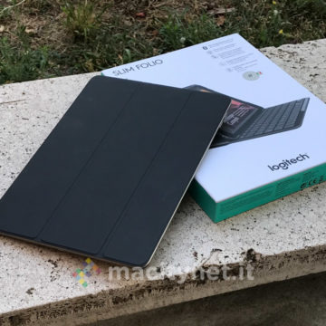 La protezione da urti, graffi e schizzi è notevole perché l’iPad viene molto ben protetto. La possibilità di utilizzare solo la Slim Folio come protezione dell’iPad 2017 per il suo trasporto sia a mano che in borsa la rendono molto interessante. La precisione di utilizzo, la forte autonomia e la presenza di tutte le scorciatoie di tastiera che da iOS 9 sono state non solo implementate ma anche rese facilmente conoscibili (basta tenere premuto il tasto mela in una app perché appaiano tutte le scorciatoie di tastiera contestualmente rilevanti) riposiziona letteralmente l’iPad più economico e lo rende un competitor molto interessante per chi deve fare business e vuole risparmiare qualche centinaio di euro rispetto all’iPad Pro, con meno potenza ma con la stessa filosofia, le stesse app professionali e una grande flessibilità di impiego grazie alla tastiera Logitech.