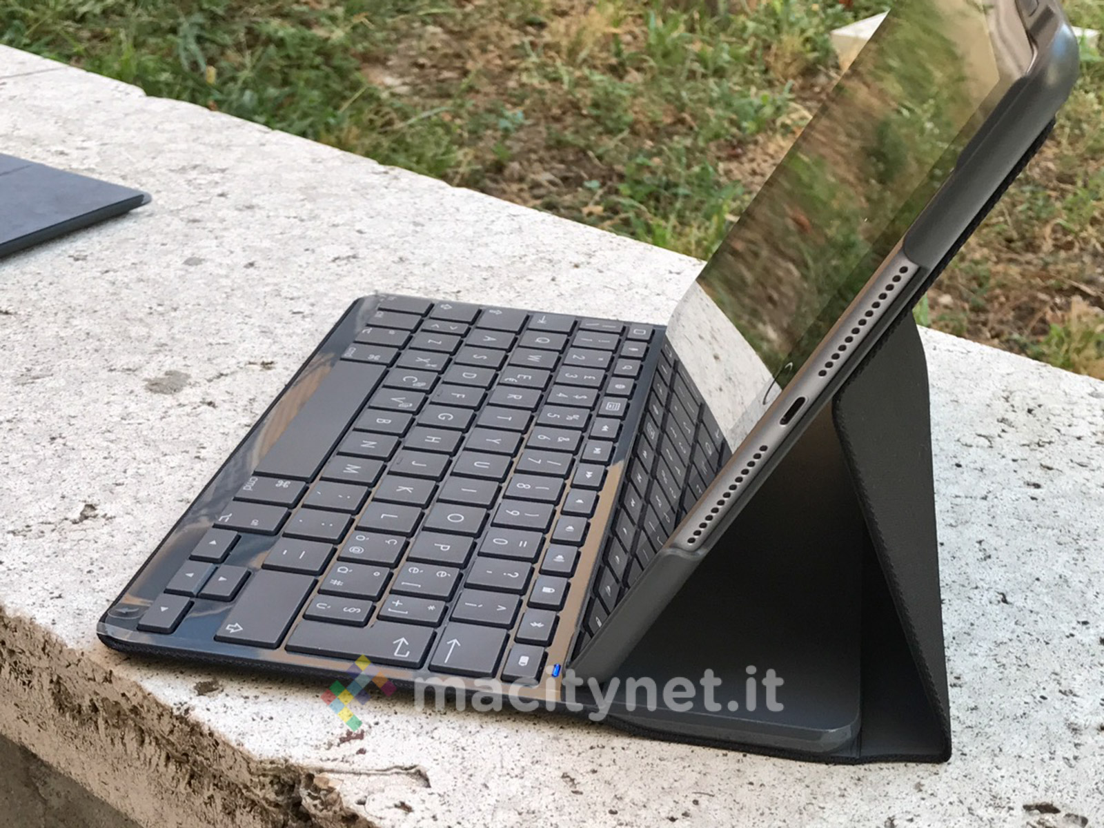 La particolare robustezza e rigidità della soluzione permette anche, con un minimo di flessibilità, di utilizzarla sulle ginocchia e non solo su una superficie di appoggio stabile come un tavolo o altro. Questo è un vantaggio per chi si trova a dover scrivere senza un piano di appoggio (accade più di frequente di quanto non sembri, soprattutto con un apparecchio così flessibile come l’iPad) e abbiamo testato personalmente che funziona abbastanza bene anche a letto.
