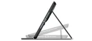 L’aletta, che ha anche la funzione di blocco e sblocco automatico tipica della Magic Cover, una volta aperta rivela tre scanalature poco profonde che servono a regolare l’inclinazione dell’iPad. In posizione orizzontale lo potremo usare per vedere un film o scrivere, usando una tastiera Bluetooth. Come nel caso della custodia citata poco sopra, però potremo ruotare il supporto e mettere in verticale l’iPad, la posizione ideale per navigare in Internet o per Facetime o Skype. La cura posta da Logitech nel design si nota anche dalla presenza di alcuni gommini posti sia sul lato lungo che sul lato corto, che impediscono all’iPad di scivolare. Da segnalare che potremo anche ribaltare l’aletta e posizionare l’iPad in posizione quasi perpendicolare al piano; in questa conformazione il tablet può essere usato per scrivere usando la tastiere software.