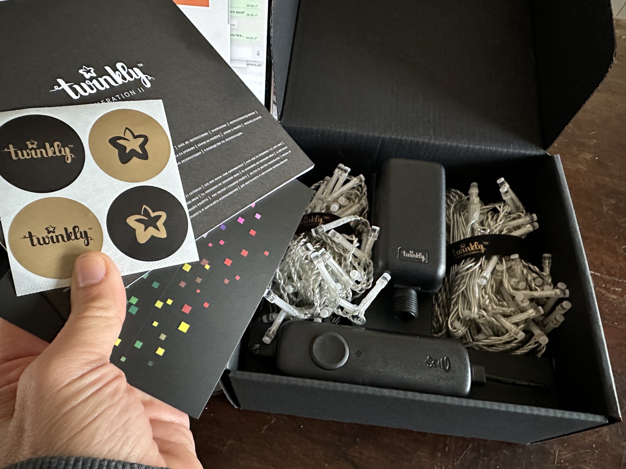 Tralasciamo il sempre noioso processo di unboxing (dentro alla scatola, poi, non c’è niente altro che la stringa delle luci, meticolosamente avvolte con un velcro) e passiamo all’esperienza di installazione. Noi abbiamo acquistato e usato per decorare casa nostra sia una Twinkly Icicle sia una, anzi due (di questo dopo) Twinkly String. La Icicle l’abbiamo collocata sotto un portico, le due String su un abete che abbiamo in giardino.