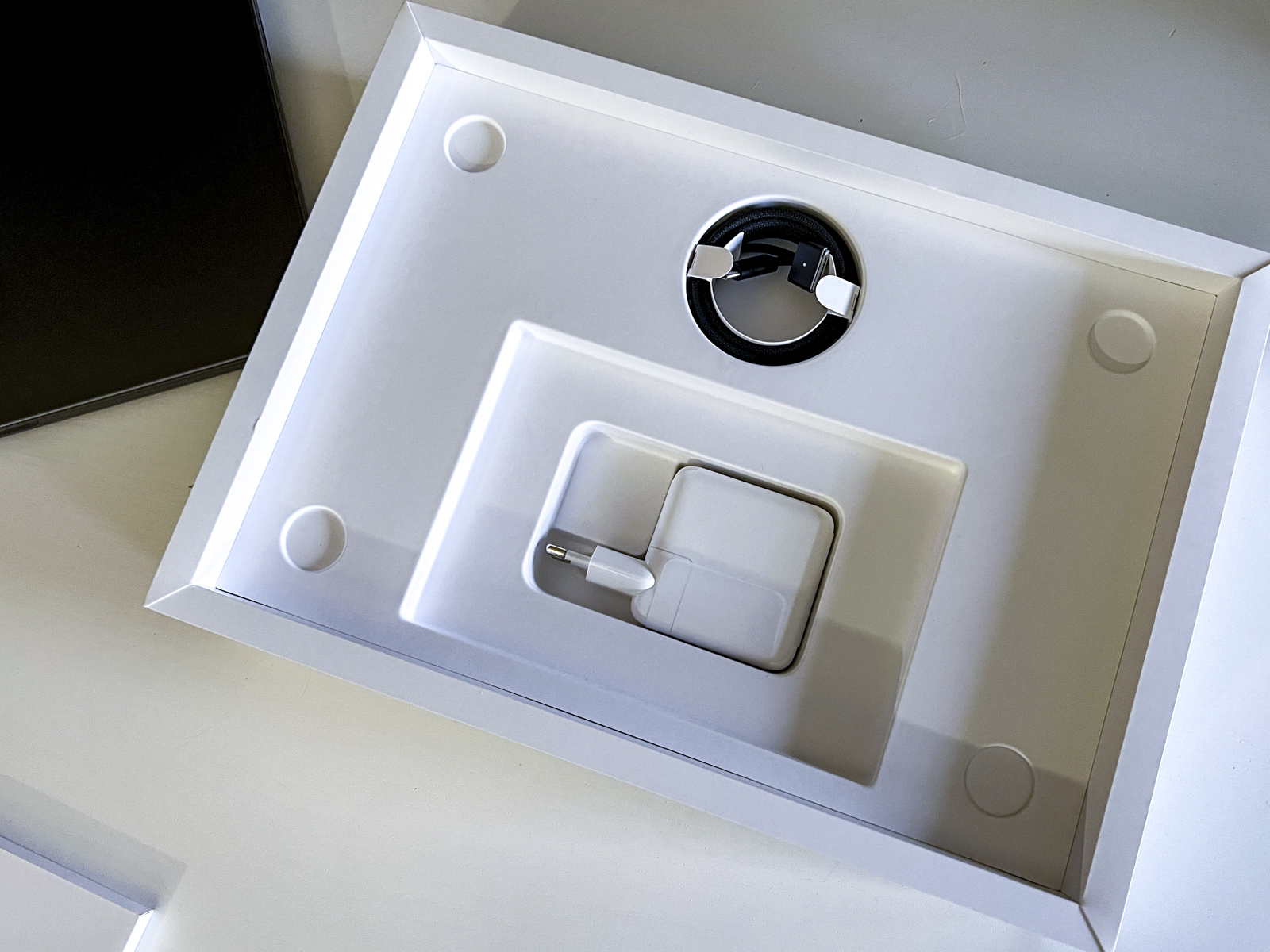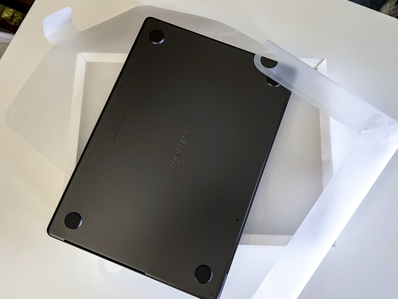 L’unpacking di questo MacBook Pro non ha riservato particolari sorprese, dato che è sostanzialmente identico a quello degli altri Mac con processore Apple Silicon e non molto diverso dagli ultimi modelli con processore Intel. Ma resta il fatto che la qualità dei materiali e del packaging è eccellente e aprire un Mac, anche qui che lo si fa da molti anni, è sempre una bella sensazione.