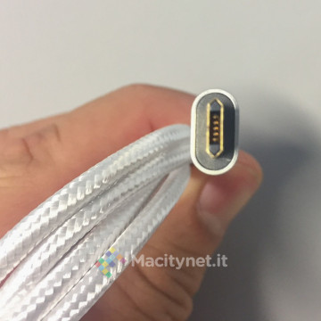 I cavi reversibili non sono una novità assoluta. In commercio ce ne sono diversi, ma questo è stato il primo (ora se ne trova qualcun altro)reversibile sul connettore Micro-USB; tutti gli altri che abbiamo visto prima di esso erano reversibili sul connettore USB. Questo evita il peggior problema di questo standard: la necessità di “centrare” la presa, una cosa fastidiosa già quando si tratta di un normale connettore USB, che diventa spesso un problema più grande con il Micro-USB visto che non solo è molto piccola ma a volte è anche infossata, spesso persa da qualche parte sull’accessorio che dobbiamo ricaricare. Per non parlare del fatto che chi ha un telefono Android è anche obbligato a cercare la direzione giusta in situazioni molto scomode, ad esempio mentre guida per una ricarica in auto.