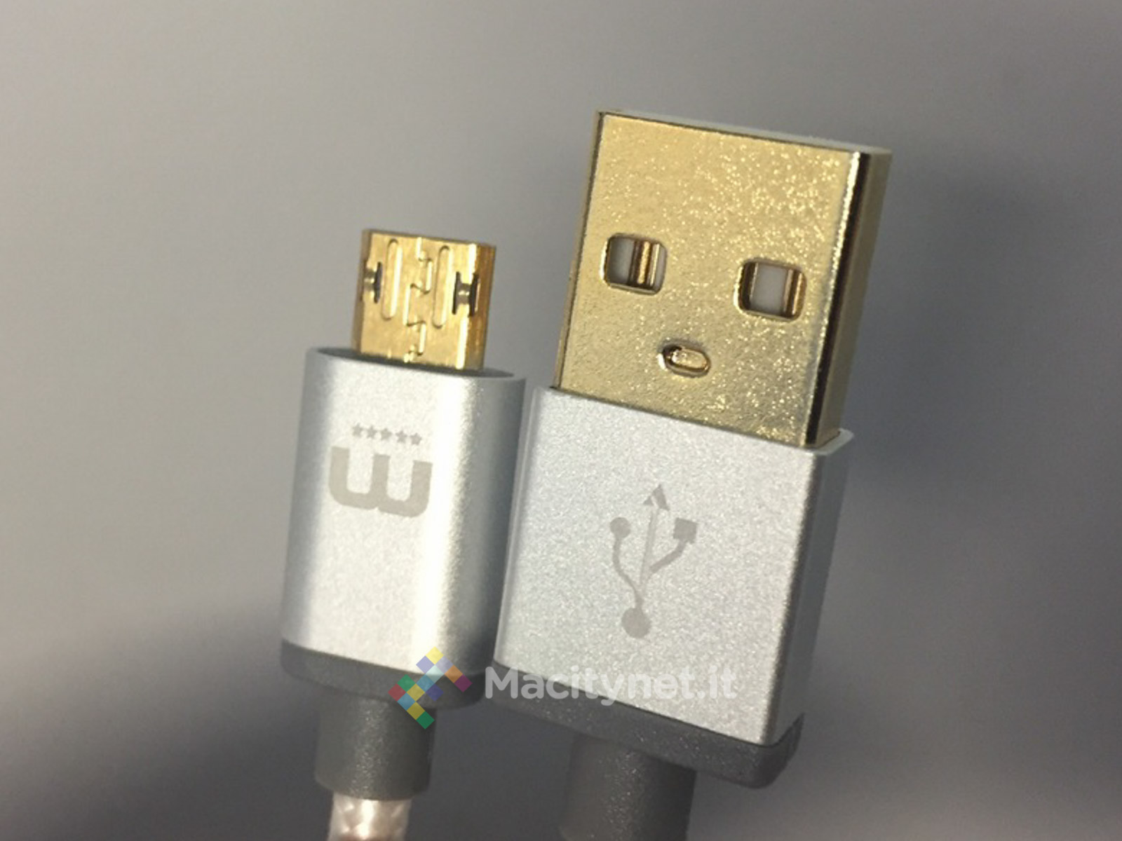 In secondo luogo il cavo Winnergear, che è lungo un metro (e non 20 centimetri come i cavi che trovate nelle batterie) ha connetttori totalmente in alluminio, davvero molto robusti e ben realizzati, oltre che placcati in oro per una migliore conduttività. Chi ha messo le mani su un cavo Micro-USB comune, inclusi quelli che troviamo dentro alle confezioni di telefoni cellulari di grande marca, sa che spesso si tratta di prodotti davvero poveri, realizzati con materiali di scarsa qualità e approssimativi proprio nei connettori che rischiamo di rovinarsi proprio in questo punto.