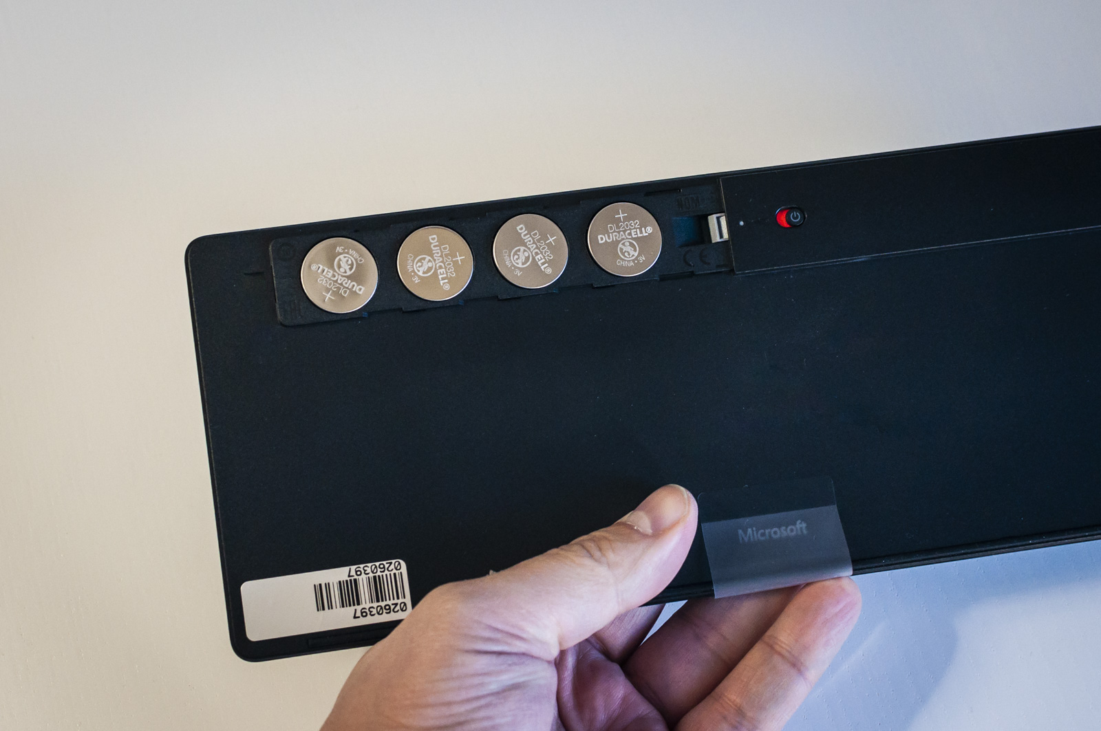 La nuova tastiera ha dimensioni molto contenute, appena 284,07 x 110,77 mm, con uno spessore di meno di 1 centimetro nella parte più spessa, non regolabile: fuori dalla scatola si presenta sola, senza cavi di connessione che non servono, grazie all’incredibile durata di ben tre anni data dalle batterie CR2032 (incluse nella confezione).