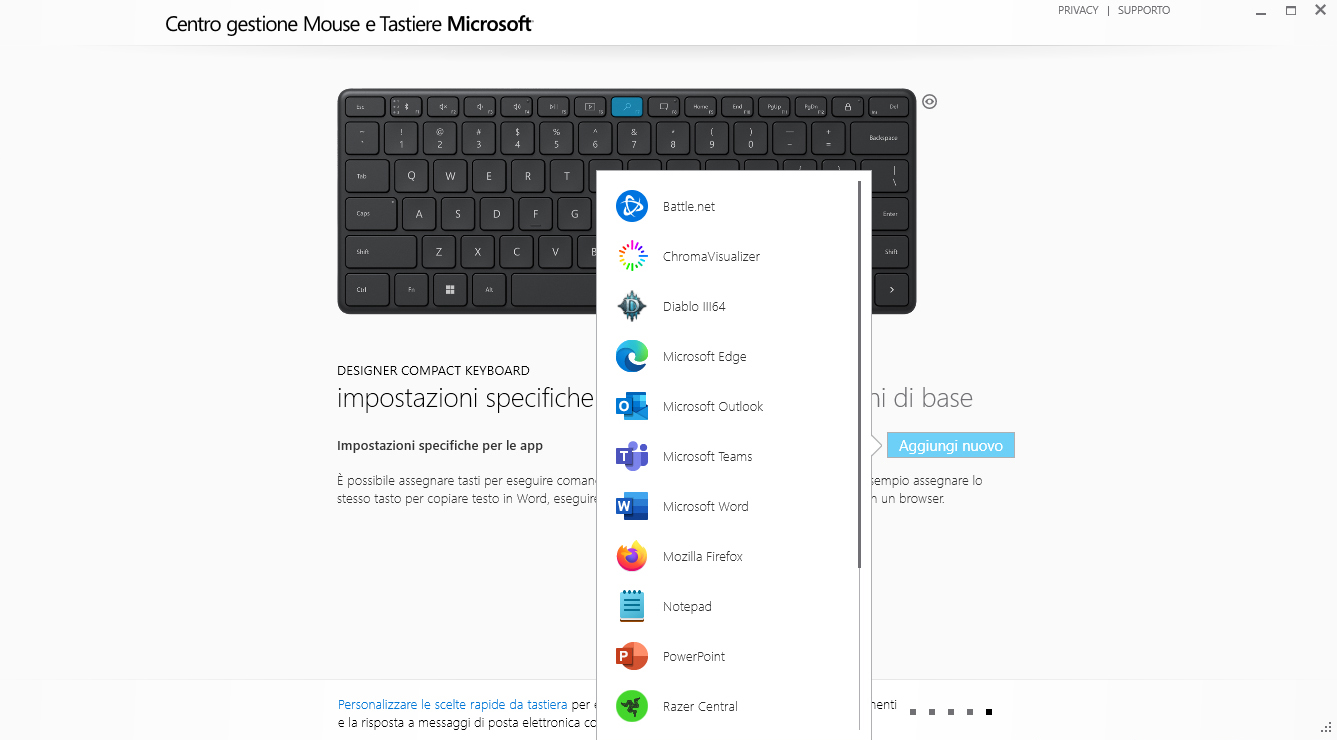Sostanzialmente, il vantaggio di usare la tastiera su Windows è che è possibile scaricare una App che offre alcune personalizzazioni, come ad esempio la possibilità di usare alcuni tasti funzione pre-programmati, per aprire il modulo ricerca o effettuare screenshot, che possono essere invece adattati ad altri usi previsti dal software.
