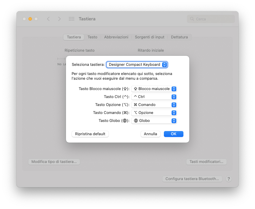 Su altri sistemi operativi, la personalizzazione è assente e i due tasti non funzionano, ma tutto il resto è identico: anzi, su macOS Monterey dove abbiamo fatto parte del test, è stato possibile fare alcuni adattamenti direttamente dal modulo Tastiera all’interno di Preferenze di sistema, in modo da invertire i tasti Windows e Alt con, rispettivamente, Opzioni e Command, in modo da portare la tastiera ad un utilizzo più vicino all’esperienza dell’utente Mac.