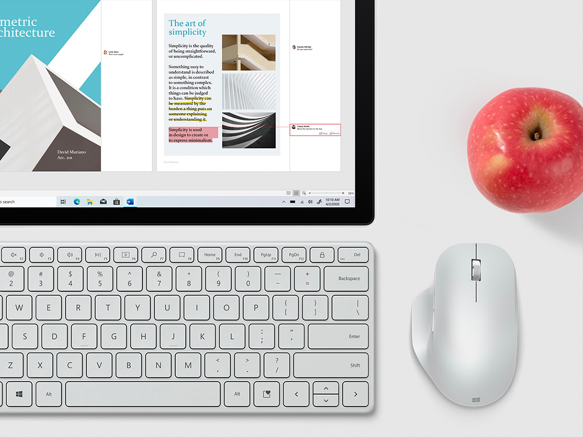 Caratterizzata da dimensioni molto contenute e allo stesso tempo da un design molto elegante e business (in due colori), la nuova Microsoft Designer Compact Keyboard si è trovata a suo agio nella nostra scrivania, sovraffollata di speaker, microfono, webcam, tablet, mouse, agenda e altro.
