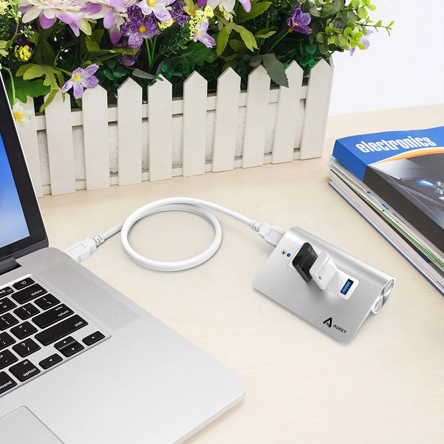 Il Mini Hub SuperSpeed Aukey a 4 porte USB 3.0 in alluminio è un accessorio che gli utenti Apple apprezzeranno particolarmente, dato che sposa le stesse linee estetiche, nei materiali e nella colorazione, di iMac e Macbook. Risulta, comunque, piacevole su qualsiasi scrivania, almeno per quanti apprezzano la colorazione argentata. Quanto a funzionalità l’hub risulta valido per tutti coloro che pur disponendo di numerose porte USB, hanno necessità di accedervi facilmente, potendo servire come una prolunga nel caso in cui il proprio PC monti gli ingressi USB in posizioni difficili da raggiungere.