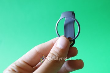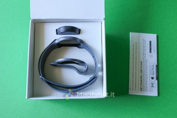 Che l’azienda abbia voluto risparmiare lo si scopre già dalla confezione di vendita, molto più piccola e semplice, seppur ancora ben organizzata all’interno. Nella scatola troviamo, oltre al activity tracker di forma circolare grande all’incirca quanto una moneta, un breve manuale utente insieme al cinturino per agganciarlo al polso ed alla clip per fissarlo su scarpe, borsa, vestiti e così via.