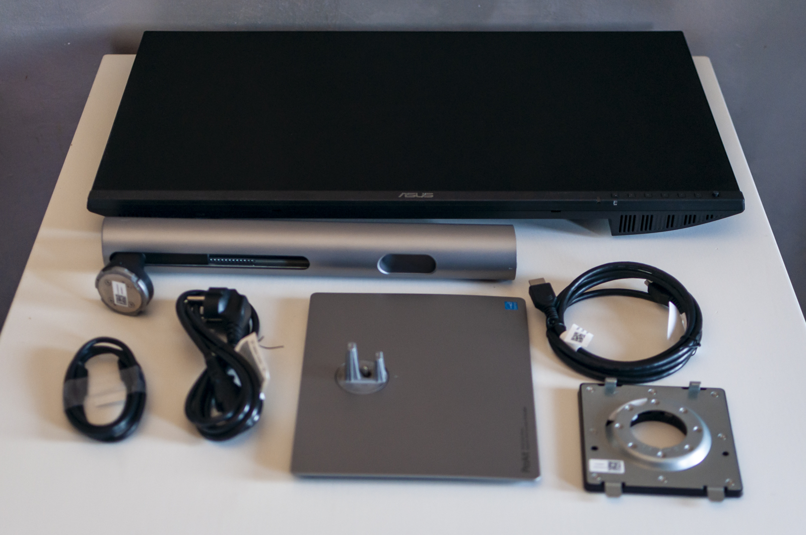 Il monitor Asus ProArt Display 5K PA27JCV arriva in una semplice scatola di cartone, con all’interno, ben piazzati, tutti i pezzi per comporre il monitor intero.
