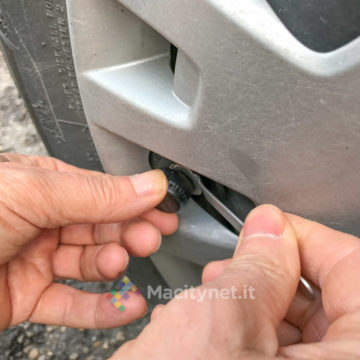 Come seconda prova abbiamo invece cercato di simulare la foratura di un pneumatico per scoprire come si comporta il dispositivo. Di default, il sistema è configurato per avvisare l’utente quando la pressione è inferiore a 2 BAR o superiore a 3 BAR. Abbiamo perciò gonfiato volutamente un pneumatico portando la pressione ad un valore di 3.2 BAR: nel momento stesso in cui abbiamo avvitato nuovamente il sensore, il monitor ha cominciato ad emettere un segnale acustico, mostrando l’apposito indicatore sul display e facendo lampeggiare i valori di pressione del relativo pneumatico. Lo stesso test ha dato esito positivo nel senso opposto, sgonfiando il pneumatico per portare la pressione a poco più di 1 BAR.