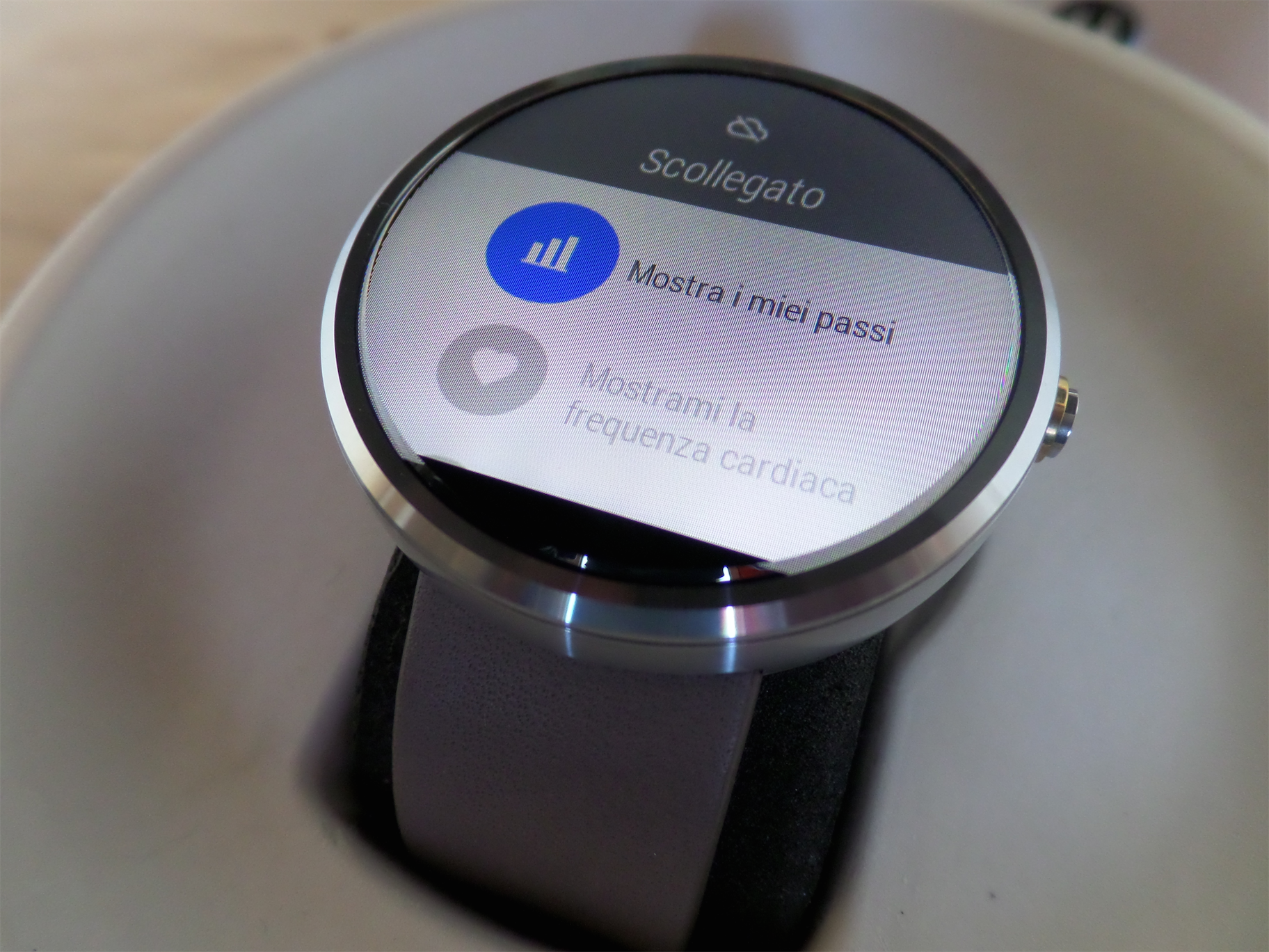 Google Fit è la nuova piattaforma Google dedicata al fitness. E’ installata anche su Android Fit e da un lato svolge un compito più che discreto. Il contapassi è abbastanza preciso, anche se tende a sottostimare le cifre, mentre il misuratore di battito cardiaco sembra funzionare a dovere, a patto di mantenere fermo il polso e di stringere il cinturino. Il problema, però, deriva dal fatto che Moto 360 è un orologio talmente tanto bello, delicato ed elegante, che difficilmente vorrete portarlo con voi durante una sessione di allenamento o una corsa. Pensare di sudare e rovinare il cinturino in pelle, o ancor peggio, l’intero smartwatch, è davvero impensabile. Moto 360 è  adatto ad una festa e ad occasioni importanti, ma che di certo non potrà essere impiegato durante gli allenamenti. Per questo, l’aspetto fitness risulta davvero limitato, a meno che non vogliate rischiare di usurare anzitempo uno degli smartwatch più belli ed eleganti presenti ad oggi sul mercato.