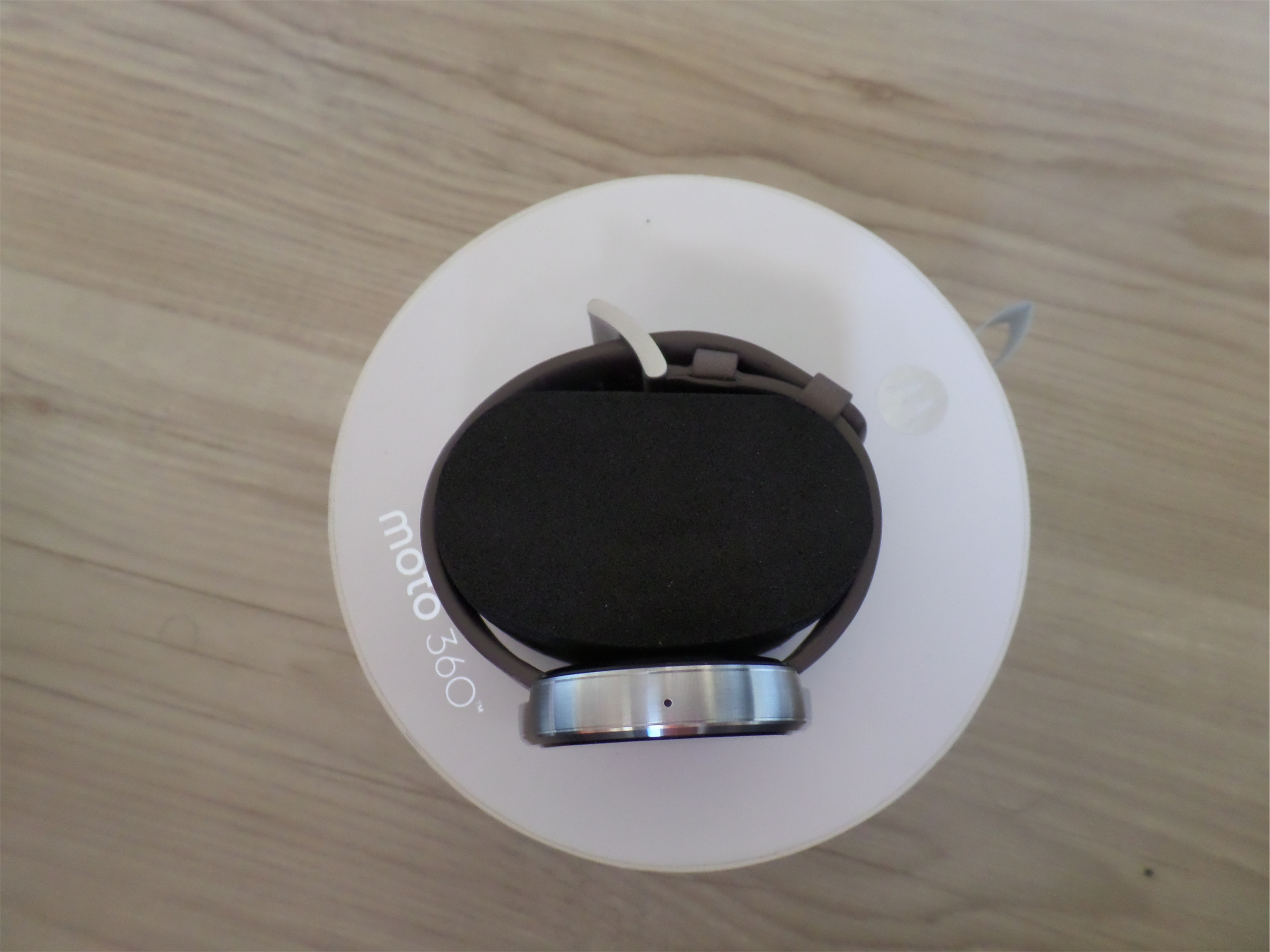 Moto 360, come lascia intendere lo stesso nome, è uno smartwatch rotondo, ad iniziare dal pack di vendita, completamente diverso rispetto a quello di smartphone e tablet. Molto voluminoso e dalla forma circolare, al suo interno ospita l’orologio, manualistica varia, carica batterie da muro e una basetta di ricarica ad induzione. Moto 360, infatti, potrà essere ricaricato appoggiandolo direttamente sulla base apposita. Dal punto di vista estetico il primo impatto è sicuramente positivo. Moto 360 stupisce per il design perfetto, o quasi. E’ pulito, minimale e il display davvero generoso nelle dimensioni. Ciò nonostante, si adatta benissimo al polso, risulta comodo, leggero e può davvero essere indossato 24 ore su 24 senza il minimo fastidio. Senza mezzi termini, è lo smartwatch più bello sul mercato, almeno fino ad oggi.