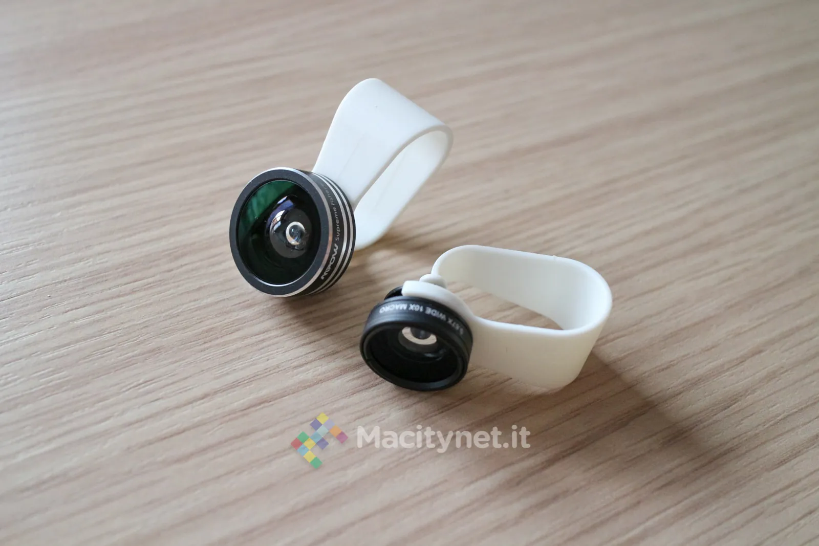 Nel caso specifico è garantito da un sistema a clip che blocca la lente in posizione sopra la fotocamera del telefono permettendo così di agganciarla e sganciarla in pochi secondi per ottenere l’effetto FishEye, oppure per scattare una fotografia grandangolare o una macro. Fuori dalla piccola confezione di vendita troviamo due clip alle quali vanno agganciate le due lenti attraverso l’apposito aggancio: si può decidere di fare attacca-stacca utilizzando un solo clip per risparmiare spazio nella tasca dei pantaloni, oppure montarle subito entrambe per avere sempre a portata di mano le lenti senza dover perdere tempo ad intercambiarle ogni volta.