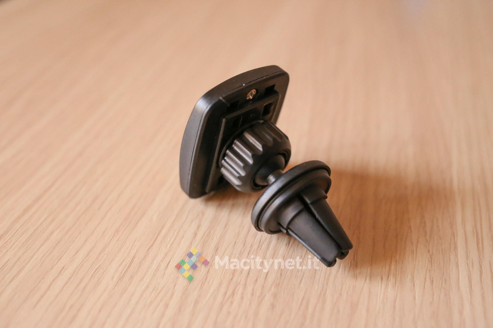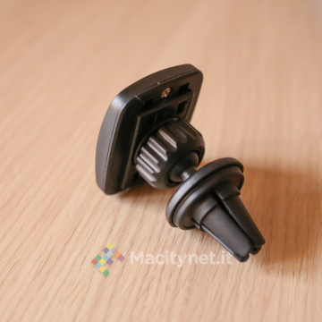Diciamo questo perché, se esteticamente non offre niente di più di un altro supporto con magnete, c’è una testa a sfera che lo distanzia quel tanto che basta dalla bocchetta dell’auto e ne garantisce un migliore orientamento inclinando tutto il sistema verso il guidatore, per una consultazione del dispositivo ancora più comoda.