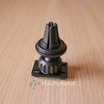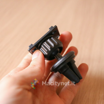 La stessa gommatura la troviamo sulla clip a croce che va infilata nelle fessure della bocchetta di ventilazione, una scelta intelligente che offre una presa migliore a tutto il supporto.
