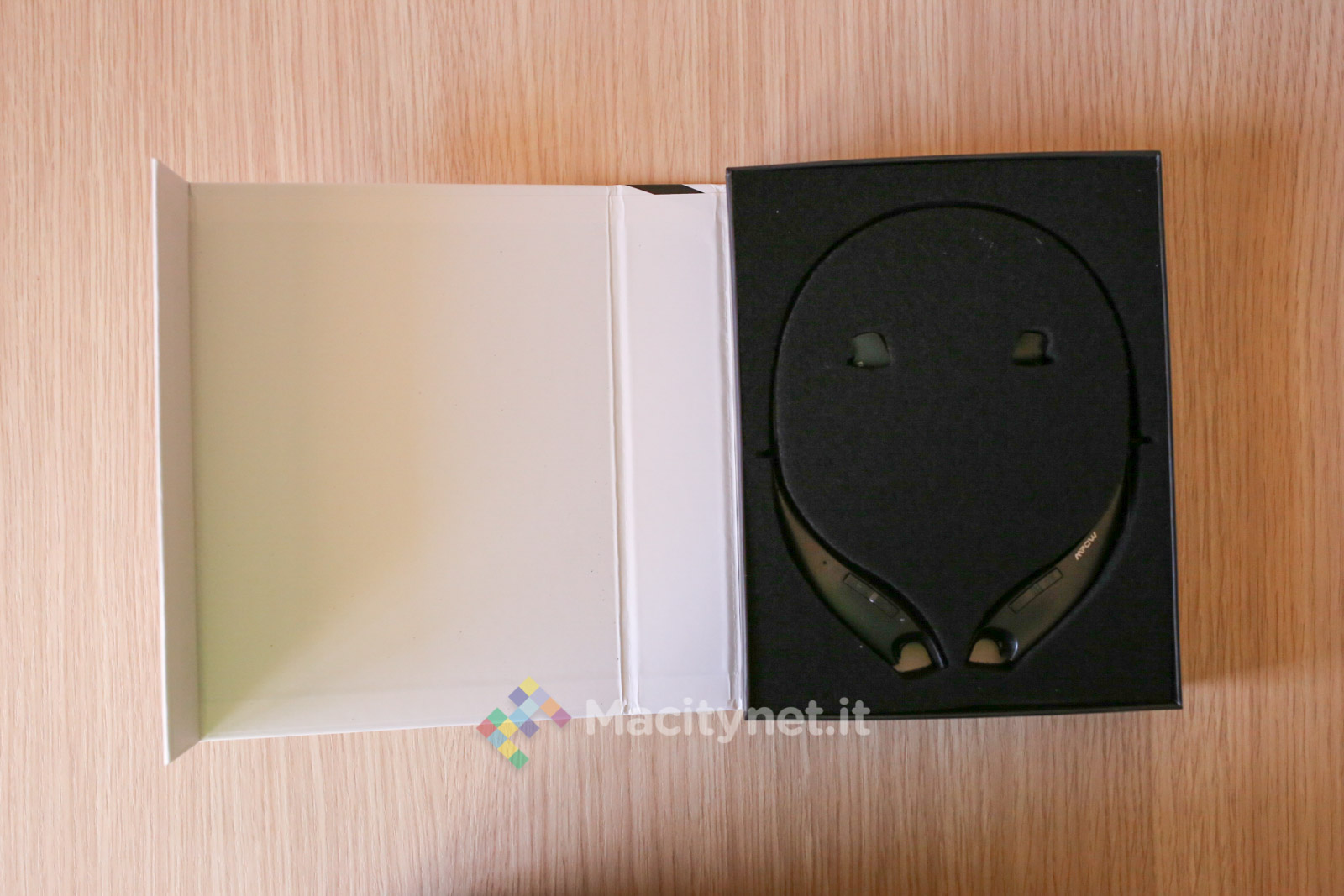 Decisamente comoda l’auto-sistemazione degli auricolari alla struttura. La calamita infatti, oltre ad attirarli, fa in modo che nella maggior parte dei casi si adagino perfettamente all’interno dell’apertura semplicemente avvicinandoli: di fatto non sarà necessario guardare dove si sta appoggiando la cuffietta, che si sistemerà correttamente in un attimo (per avere la certezza totale di sistemarli senza guardare l’archetto è sufficiente avvicinare ciascun auricolare alla struttura mantenendo orientato il lato esterno verso l’alto).