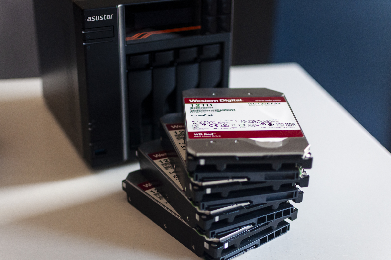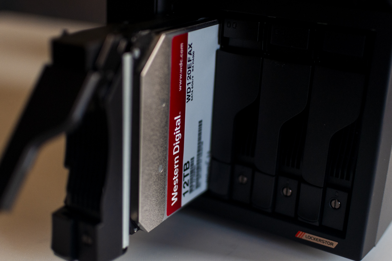 L’unità Asustor AS6804T Lockestor 4 Gen 3è stata creata usando una delle unità M.2 come disco di avvio: tre dischi meccanici RED da 12 TB sono stati formattati in un RAID 5, aiutati da una unità M.2 RED come cache, mentre la quarta unità meccanica era già stata precedentemente usata in modalità MyArchive come disco HFS+, in modo da facilitare il passaggio dati dal NAS precedente.