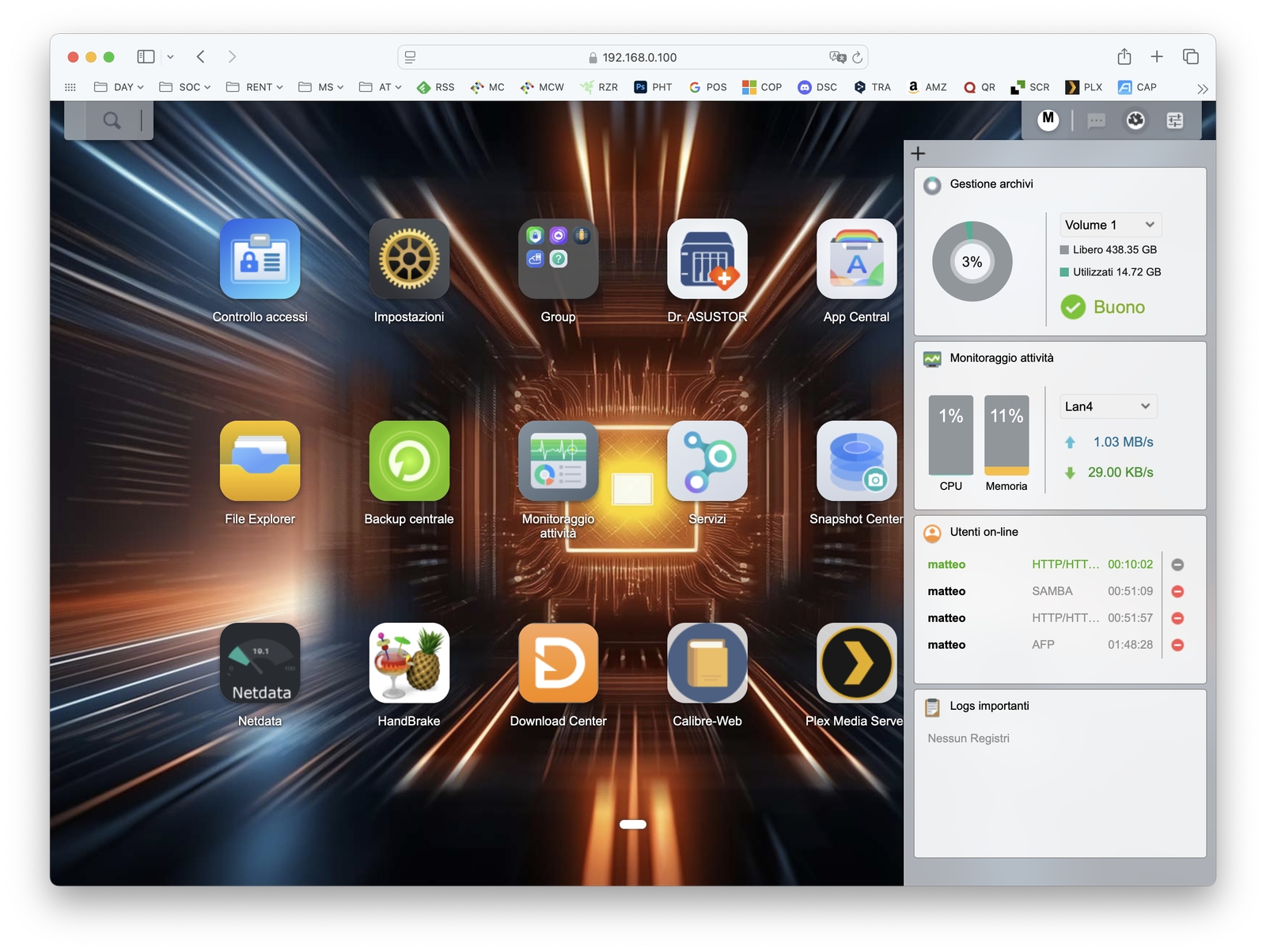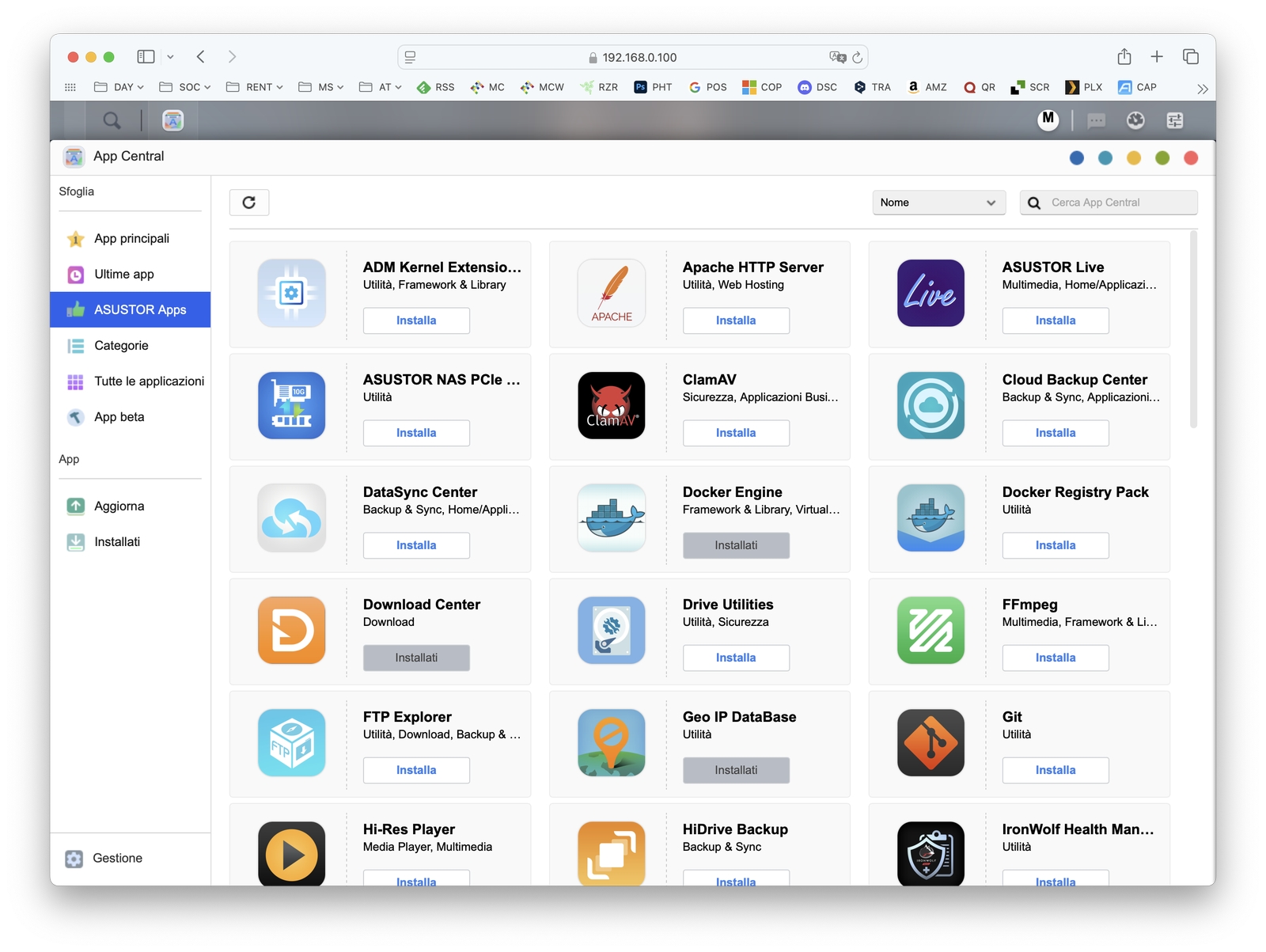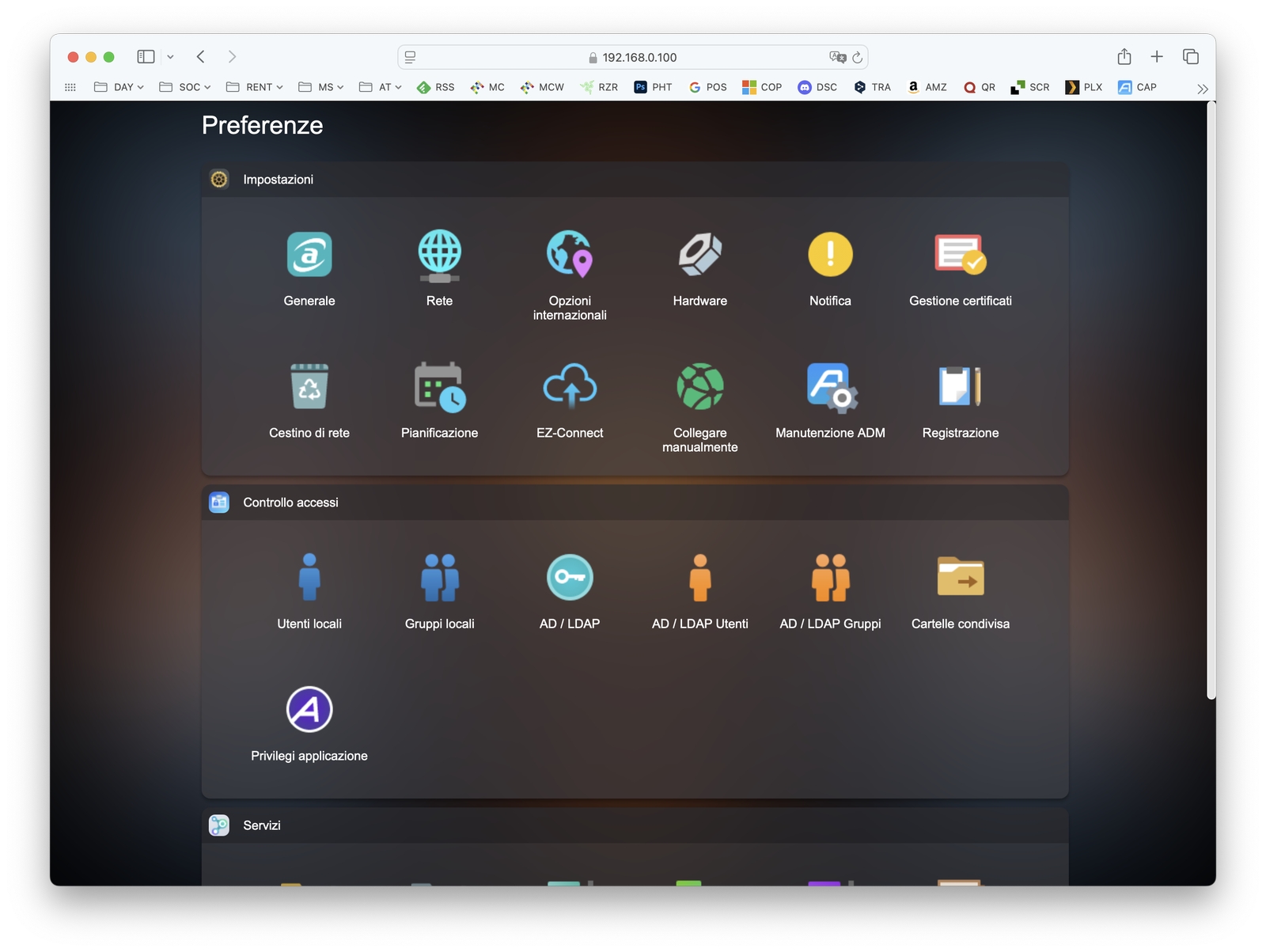 Oltre all’archiviazione dei contenuti, da condividere con la famiglia (per diletto) e con alcuni colleghi (usando il servizio EZ Connect come cloud, anche se su questo aspetto ADM deve raffinarsi un po’), abbiamo subito provveduto a installare alcuni servizi vitali, e altri non vitali ma comunque interessanti.