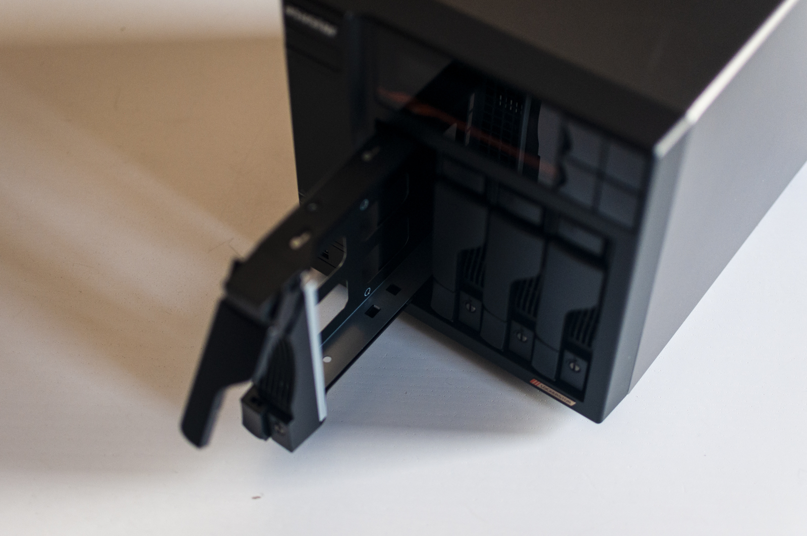 In effetti il design estetico verte più sull’aspetto pratico che sulle tipiche esigenze da salotto (per questo settore meglio un modello della famiglia Drivestor) con soluzioni come le slitte a vista frontali, spazi per memorie M.2 interne e porte ethernet da 10 Gbit, che in casa ancora non sono così comuni.