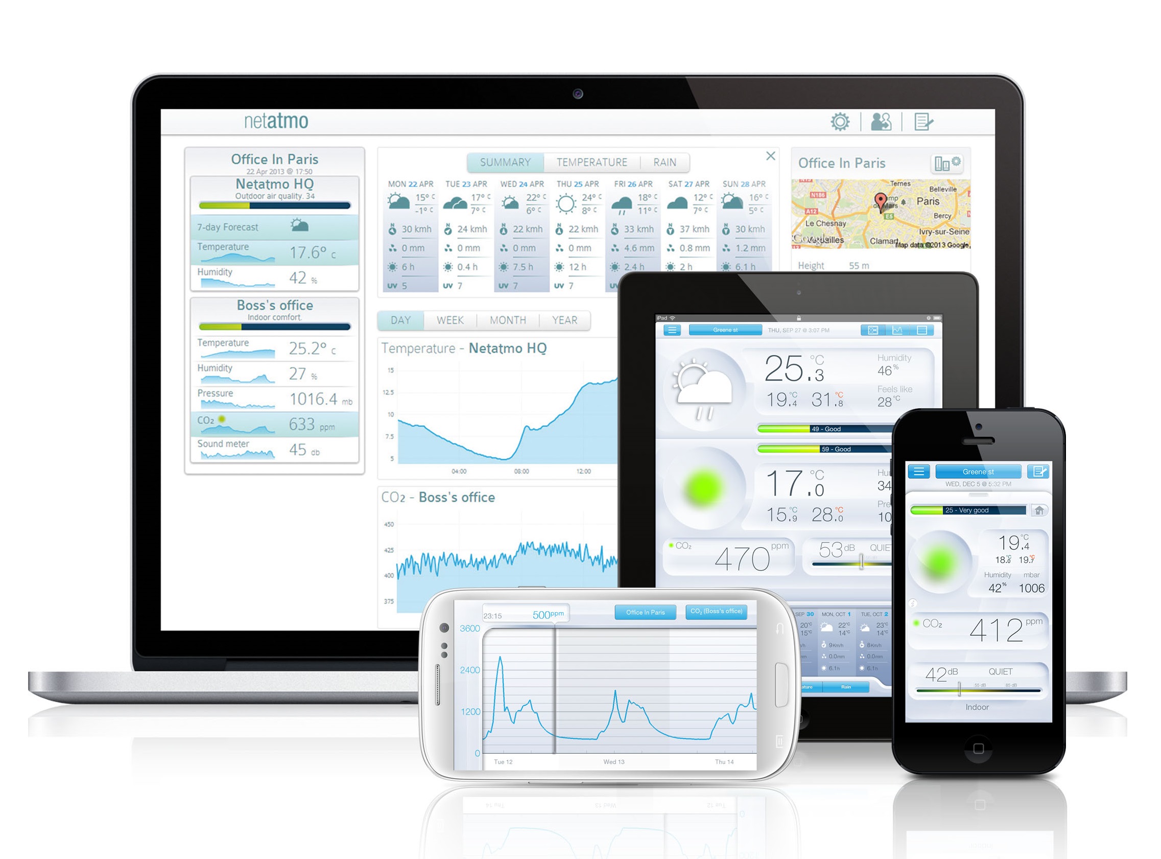 L’iPhone e l’iPad (e il Mac) fanno anche il caffè? No, ma possono dirvi che tempo fa a casa vostra, che temperatura c’è dentro la casa e la concentrazione di CO2 di una stanza, tendendo sotto controllo il meteo e anche le condizioni di salubrità, da qualunque punto del mondo. Questo è quel che promette Netatmo (su Apple Store, Amazon e presso il sito di Netatmo), un interessante accessorio compatibile con i dispositivi iOS e, per via di una semplice interfaccia Web, anche con Mac e PC, che abbiamo messo alla prova in questi giorni