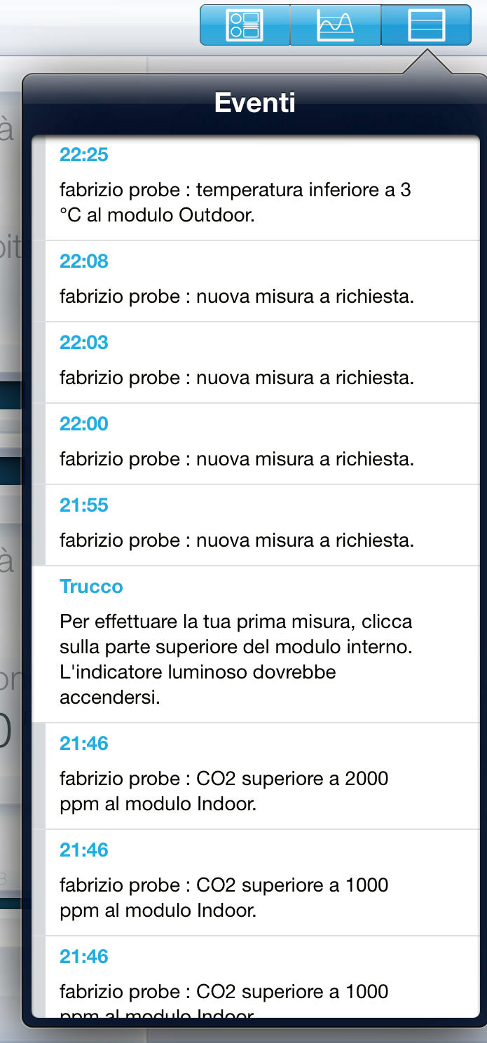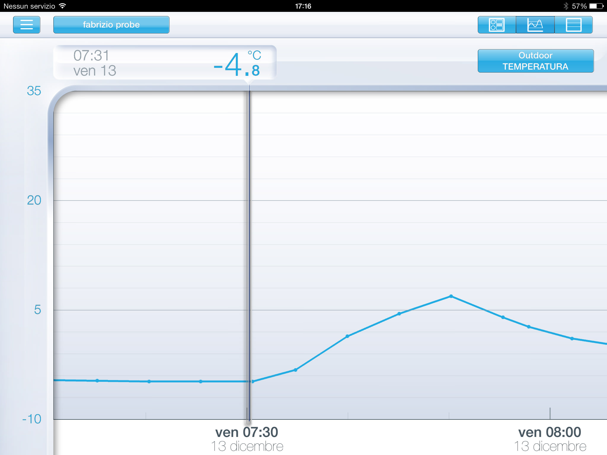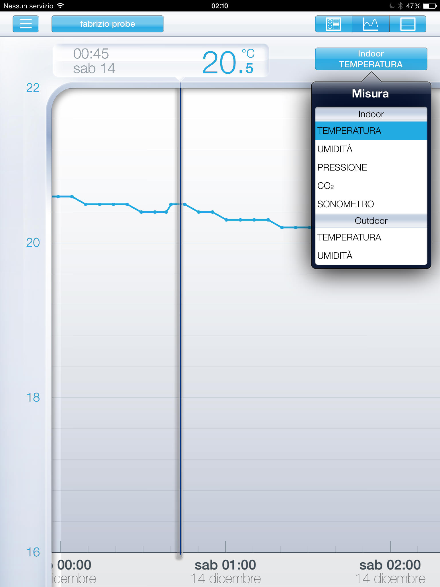 Da questo punto di vista chi ha programmato le app ha fatto un lavoro davvero eccellente, dimostrando una grande capacità di padroneggiare il design di una interfaccia iOS per renderla leggibile e intuitiva. Senza scendere troppo nel dettaglio sul funzionamento dell’interfaccia e rinviando per un piccolo approfondimento alla nostra galleria fotografica, qui ci limitiamo a sottolineare proprio la capacità di offrire in un solo colpo d’occhio tutto il quadro dei dati, senza costringere a sforzi di interpretazione. Interessante, su iPhone, anche la scelta di dare differenti informazioni a seconda dell’orientamento: quando lo schermo è in verticale, abbiamo i dati istantanei (quelli che arrivano dall’ultima rilevazione), quando lo schermo è in orizzontale abbiamo il grafico con l’evoluzione storica delle rilevazioni e quindi i grafici. L’applicazione per iPad, grazie alla maggiori dimensioni dello schermo, viene gestita in maniera del tutto diversa, con dati presentati in maniera più espansa ed integrata. Il passaggio dai dati istantanei a quelli del grafico avviene mediante un bottone.