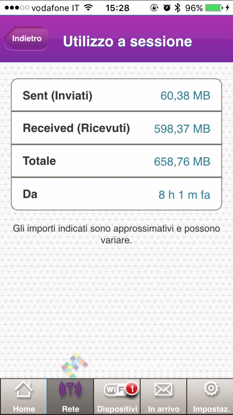 Oltre a queste informazioni, sullo schermo vengono mostrate anche alcune icone, nello specifico le classiche 5 bande che, proprio come sui telefoni cellulari, mette in evidenza la potenza del segnale; il simbolo 3G/4G per conoscere a colpo d’occhio alla tipologia di rete alla quale ci si sta appoggiando; il simbolo WiFi con un numero in sovraimpressione che rappresenta il numero di dispositivi collegati; le due frecce per conoscere l’attività di trasmissione dei dati in tempo reale; l’eventuale busta a segnalare la presenza di messaggi non letti; l’indicatore di batteria.