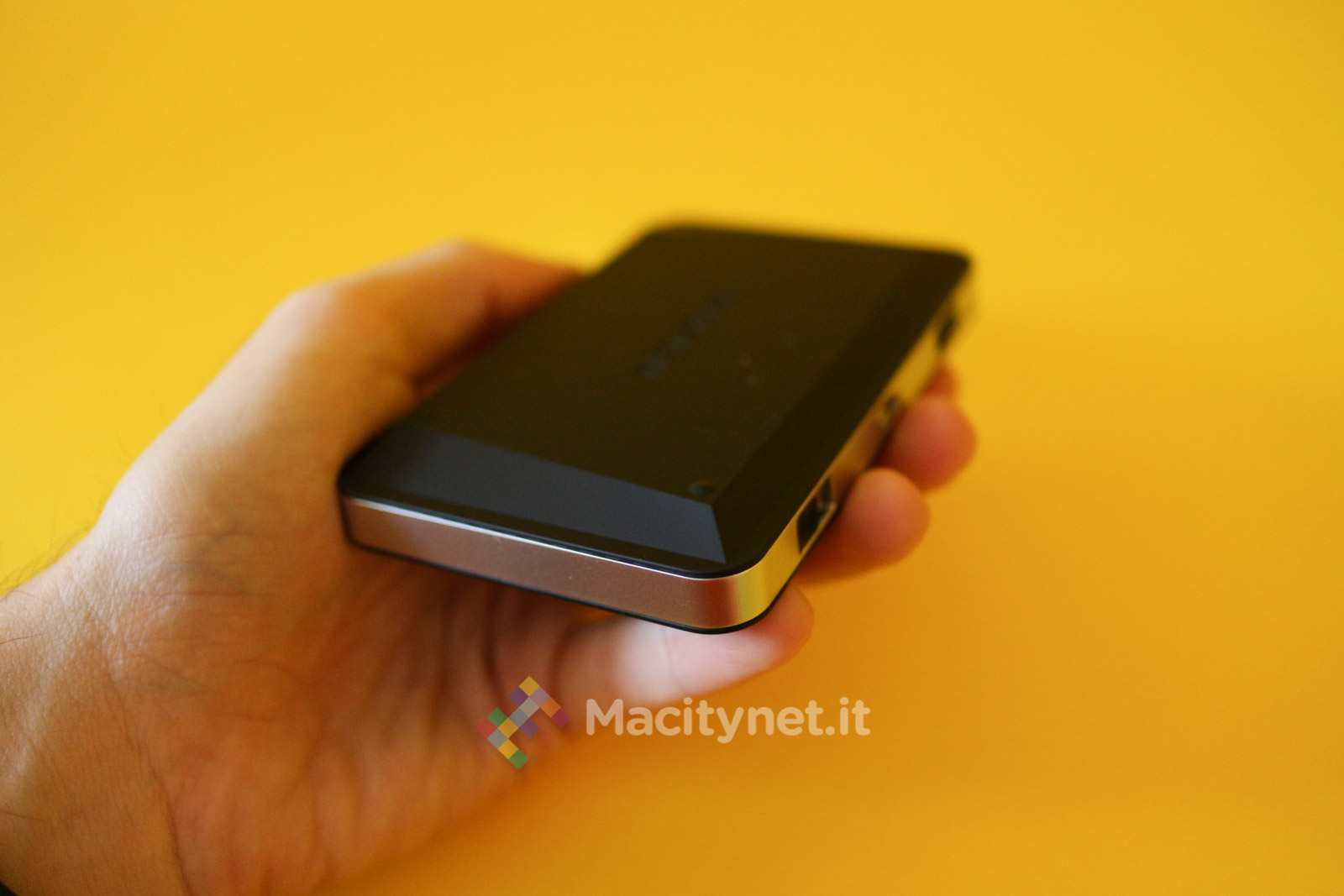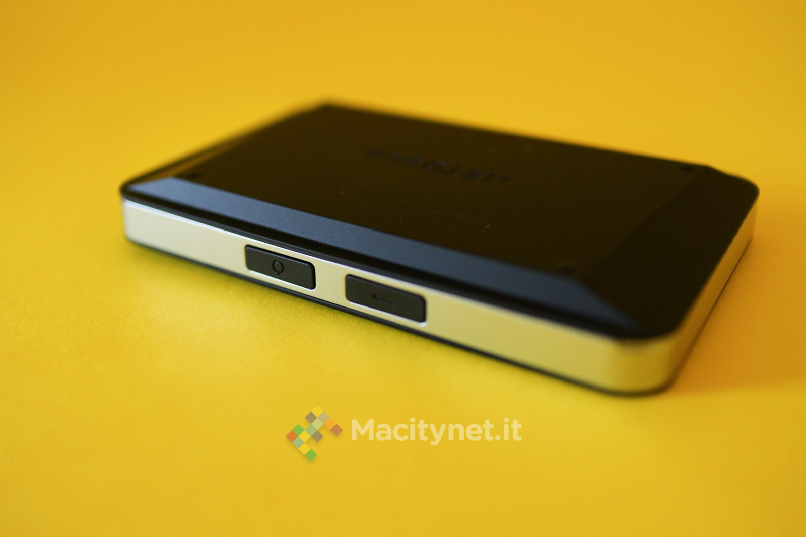 Piccolo (11 x 7 x 1,4 centimetri) e leggero (125 grammi batteria inclusa) pressapoco quanto un cellulare, sta tranquillamente in una tasca. Tutto il corpo è in plastica di ottima qualità ed è estremamente facile da utilizzare in quanto è dotato di due soli pulsanti: ON/OFF per l’accensione e spegnimento del router, ed un pulsante di navigazione per scorrere tra le poche e semplici opzioni attivabili direttamente dal dispositivo senza interfacciarsi attraverso app per smartphone o pannello web.