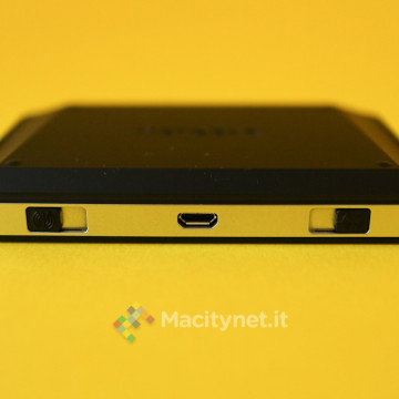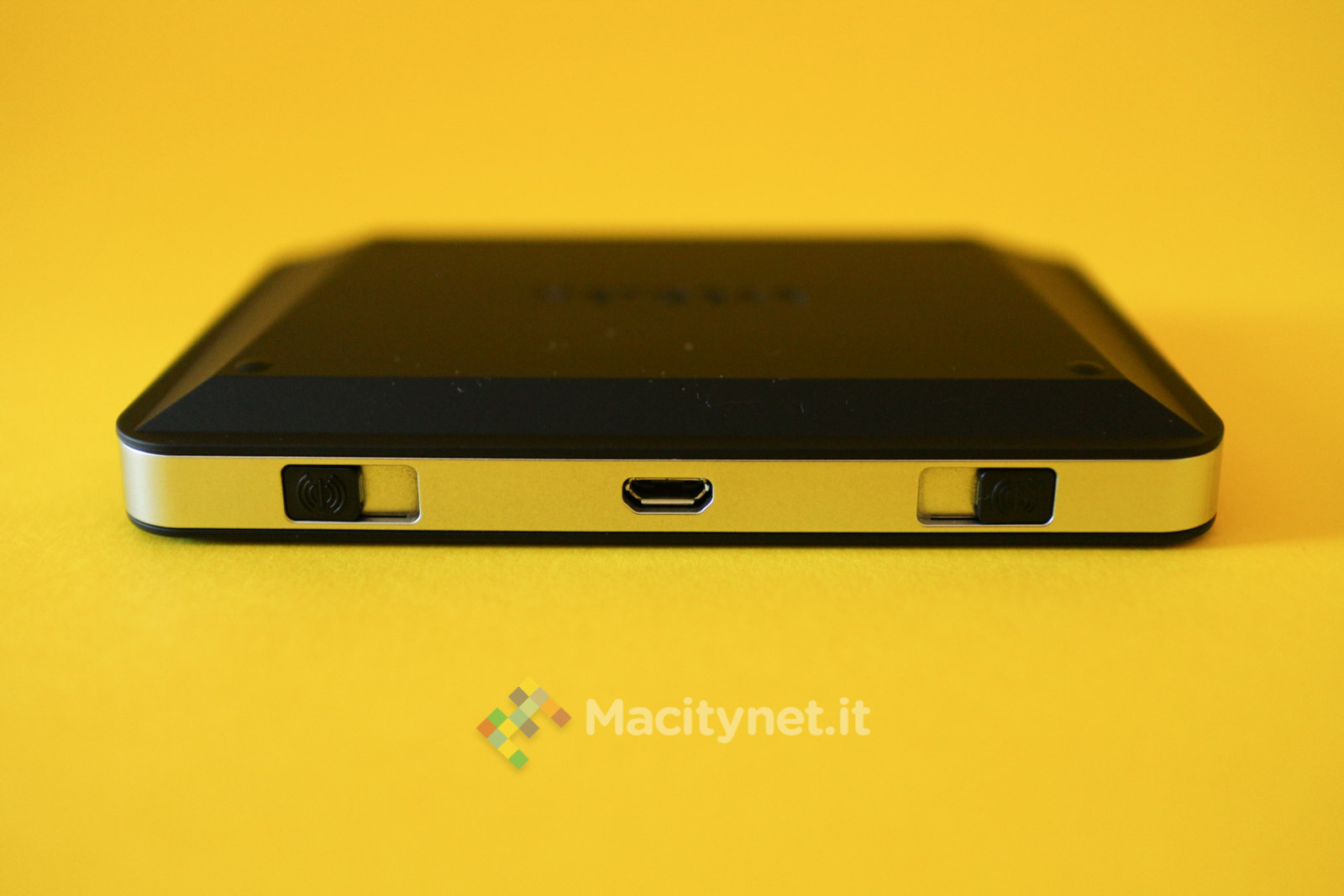Al bordo opposto a quello dove troviamo i due pulsanti sono localizzati l’ingresso microUSB per la ricarica della batteria al litio incorporata (removibile) da 2.000 mAh e le prese per il collegamento di antenne esterne, acquistabili separatamente ed utili – ma non fondamentali come dimostreremo attraverso i nostri test – per aumentare potenza e portata del segnale. Il guscio inferiore si rimuove in un lampo sollevandolo da uno dei due angoli superiori dove troviamo una piccola scanalatura che facilita l’operazione: qui andrà inserita la microSIM nell’apposito alloggiamento ed, a coprire quest’ultima, la batteria inclusa nella confezione.
