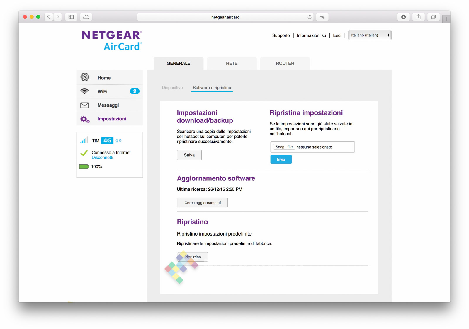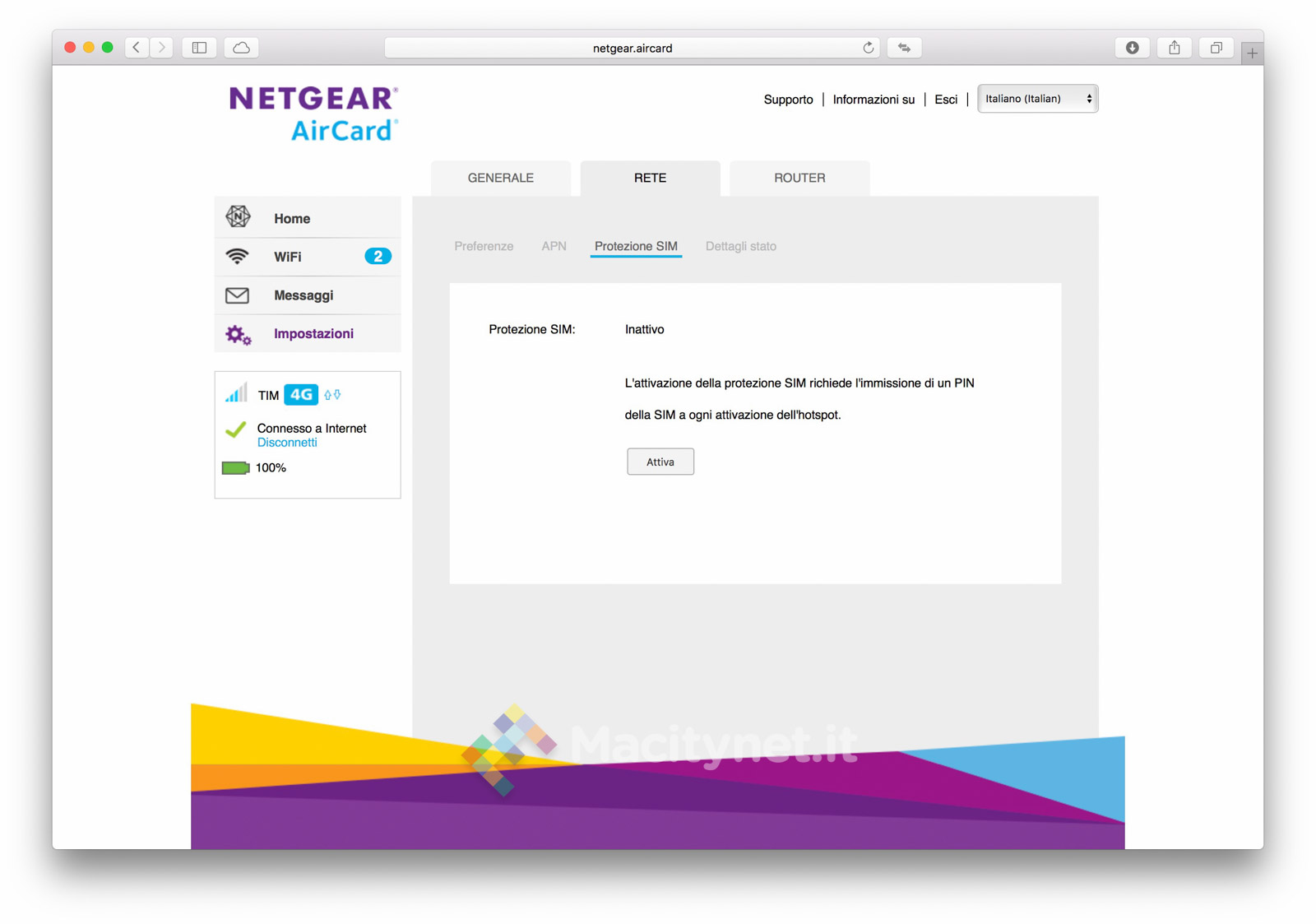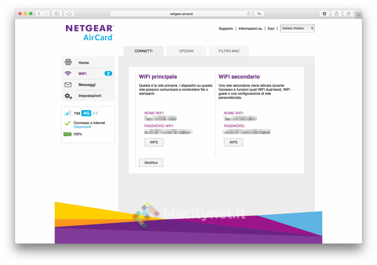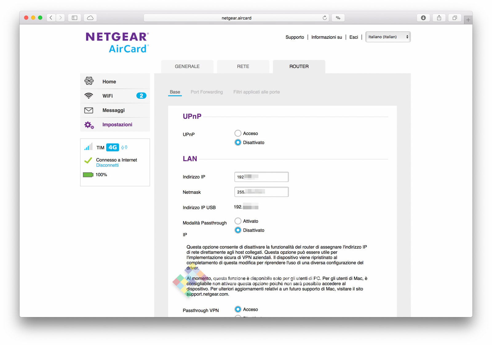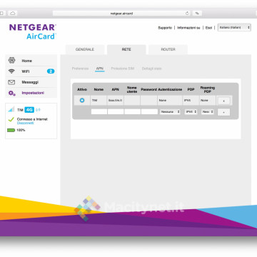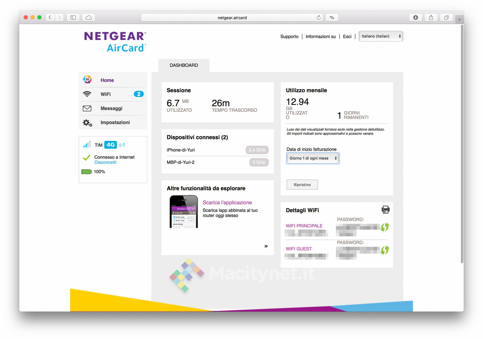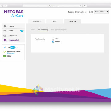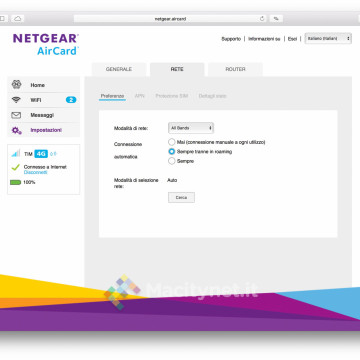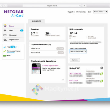 Per configurare il router è necessario prima collegarsi ad esso con un dispositivo tramite WiFi. A quel punto si possono seguire due strade: si può scaricare l’applicazione Netgear AirCard (gratis) per smartphone oppure, attraverso qualsiasi browser (anche da mobile), recarsi all’indirizzo http://netgear.aircard/.