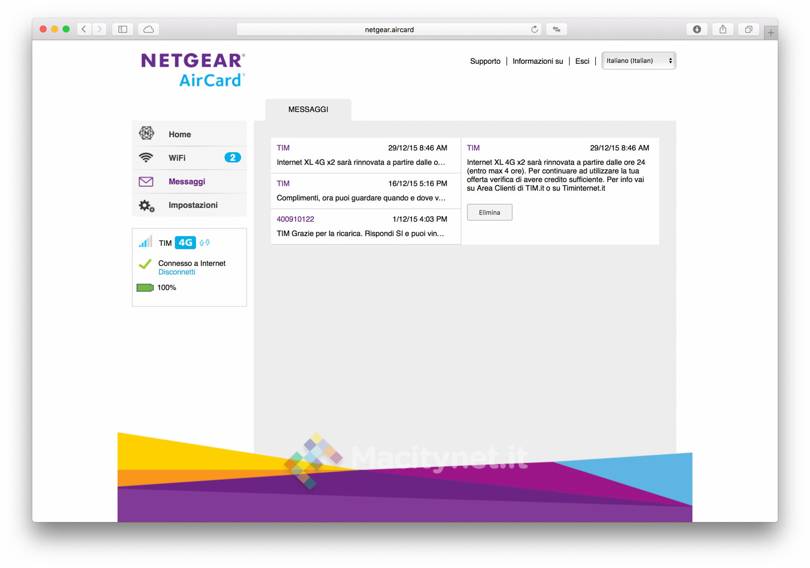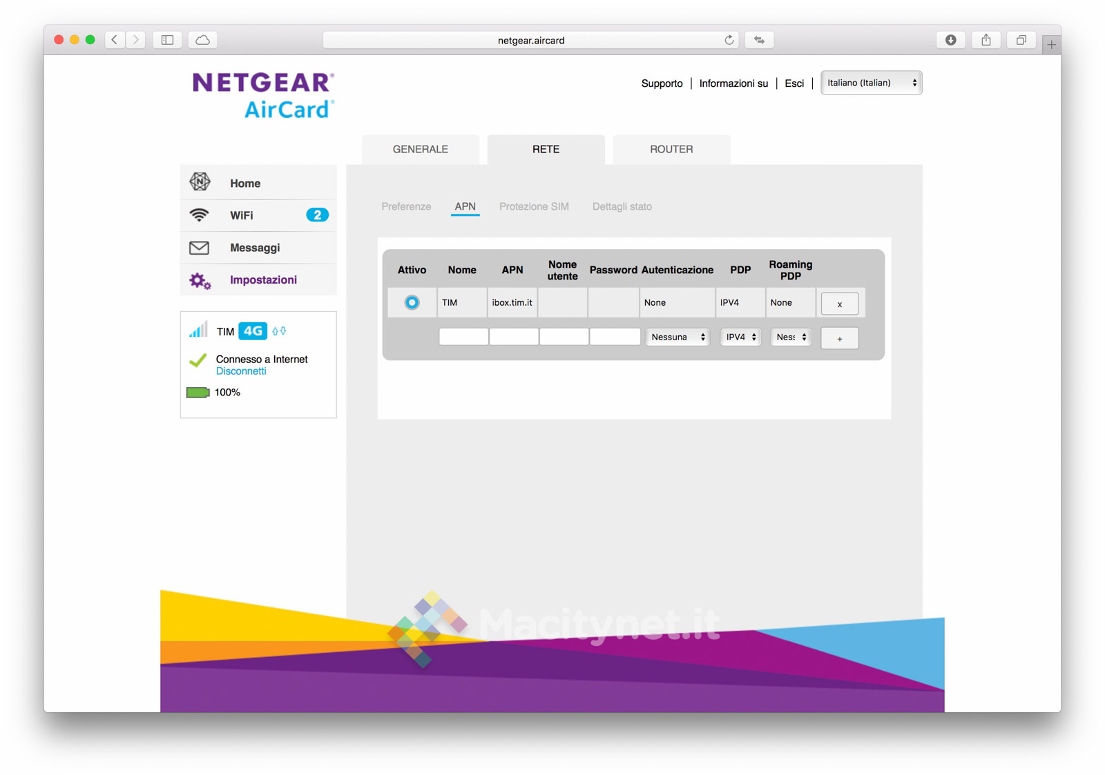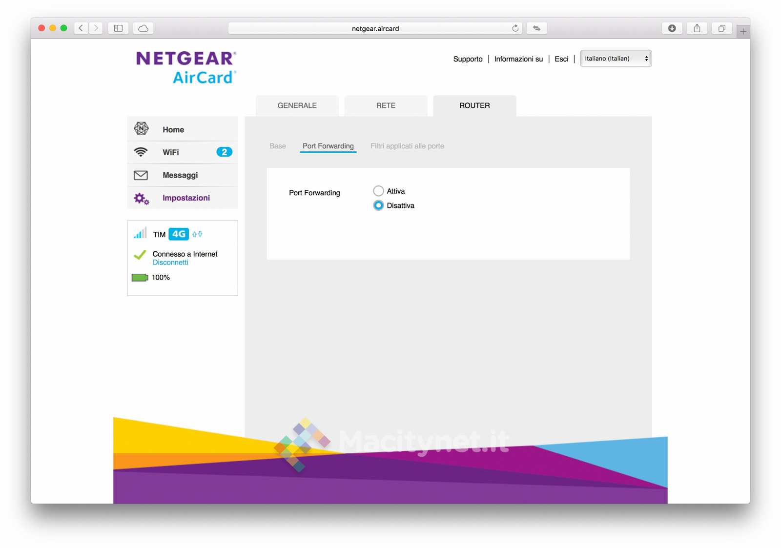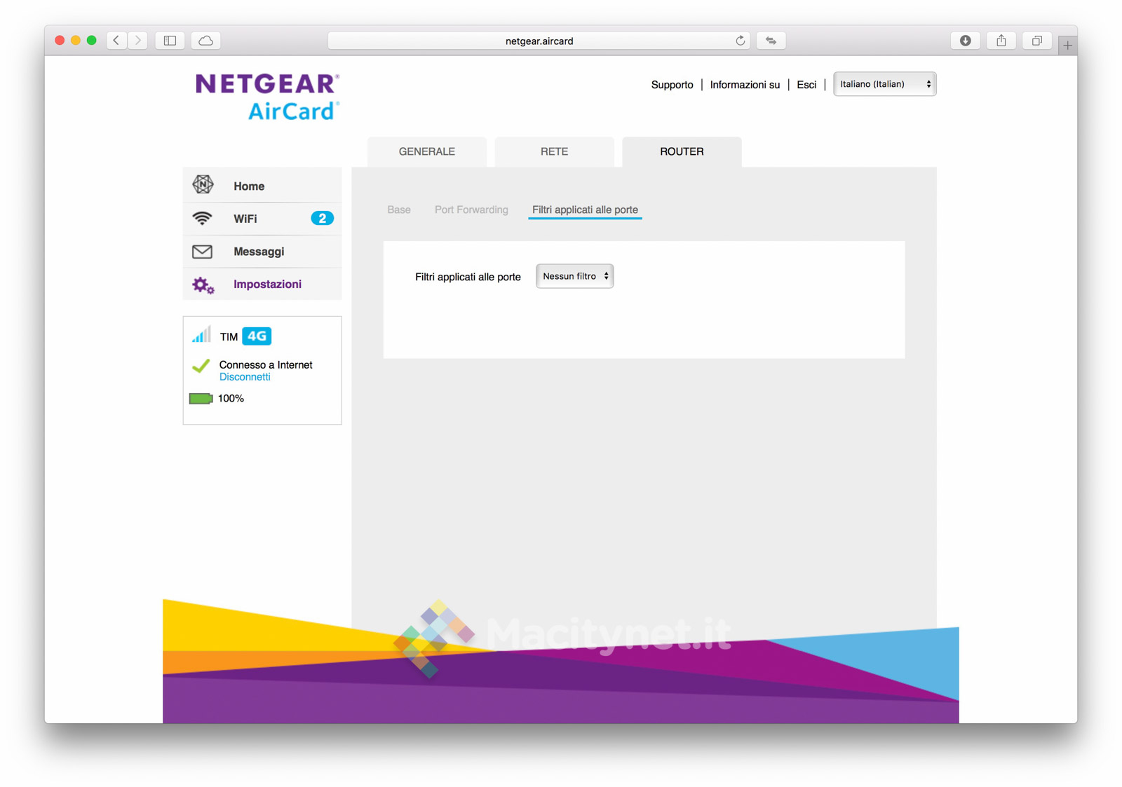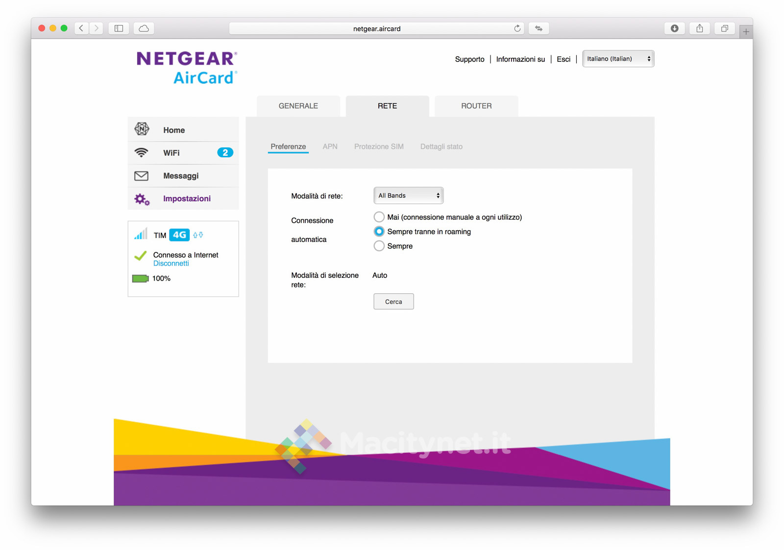 Per configurare il router è necessario prima collegarsi ad esso con un dispositivo tramite WiFi. A quel punto si possono seguire due strade: si può scaricare l’applicazione Netgear AirCard (gratis) per smartphone oppure, attraverso qualsiasi browser (anche da mobile), recarsi all’indirizzo http://netgear.aircard/.