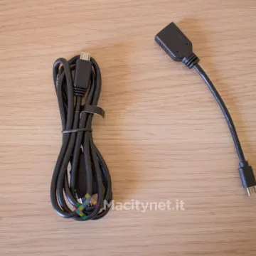 Riguardo quest’ultimo non ci è chiaro il motivo che avrebbe spinto la società nella scelta (nel manuale utente non vi è alcuna menzione in merito) in quanto, in dotazione, troviamo invece un cavo con il più conosciuto microUSB a 5 pin, per essere chiari il cavetto microUSB adottato nella quasi totalità dei dispositivi elettronici attualmente in commercio. Quest’ultimo si collega senza problemi nell’apertura più ampia dell’ingresso a 9 pin, ma se non si presta attenzione durante l’inserimento si rischia di rovinare la presa.