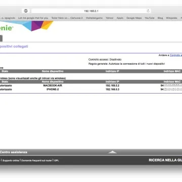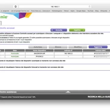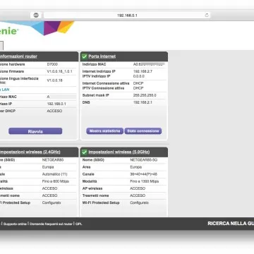 Dalla sezione “Internet” è possibile verificare e cambiare i tradizionali parametri di connessione, specificare se ottenere automaticamente i DNS o indicare quelli preferiti, attivare o no il NAT, sfruttare o no un indirizzo IP pubblico e così via. Dalla sezione “Wireless” si può cambiare il nome dell’SSID (il nome della rete WiFi visualizzata dai vari dispositivi), il canale di trasmissione, la modalità (fino a 54Mbps, fino a 289Mbps, fino a 500Mbps), specificare opzioni di protezione (nessuna, WPA2-PSK, WPA-PSK+WPA2-PSK, WPA/WPA2 Enterprise), specificare la password. Dai “dispositivi collegati” è possibile visualizzare l’elenco dei dispositivi connessi, capire se questi sono autorizzati o no (a patto che il controllo accessi sia attivo), l’indirizzo IP e l’indirizzo MAC (Media Access Control) di ogni computer/dispositivo collegato.