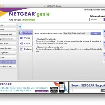 Il cuore del dispositivo è un processore dual core da 1GHz; il modem/router supporta velocità fino a 1.9Gbps, integra meccanismi di QoS che prevedono priorità nei collegamenti tipicamente usati da streaming e gaming in modo che gli altri dispositivi connessi non creino interferenze rallentando la velocità. A proposito di streaming dall’app Netgeargenie è possibile indicare un computer come server per i contenuti multimediali, condividendo i file per permettere ad altri di accedere ai contenuti e consentire la riproduzione in rete; si può specificare una cartella predefinita per video, audio e immagini.
