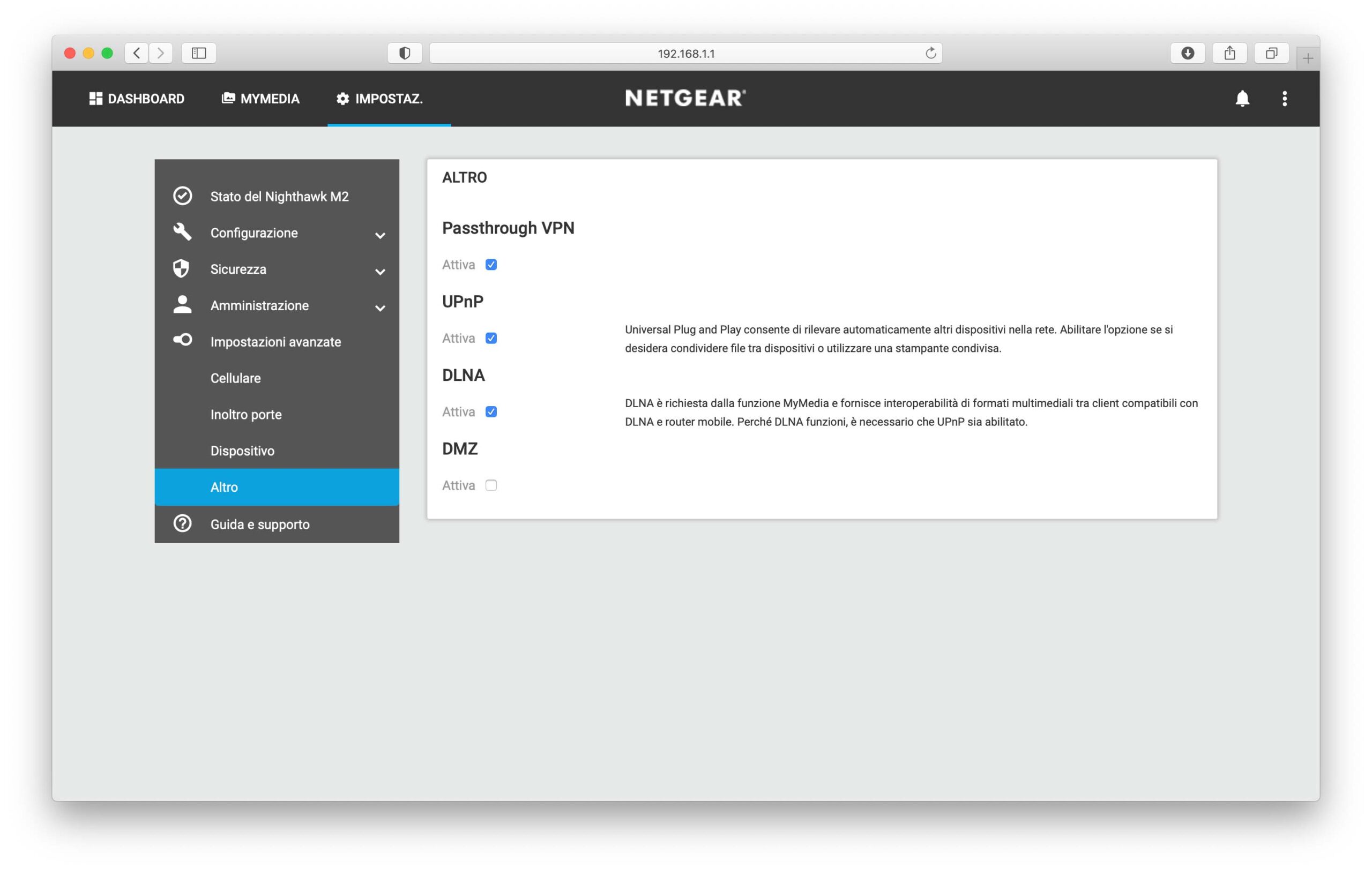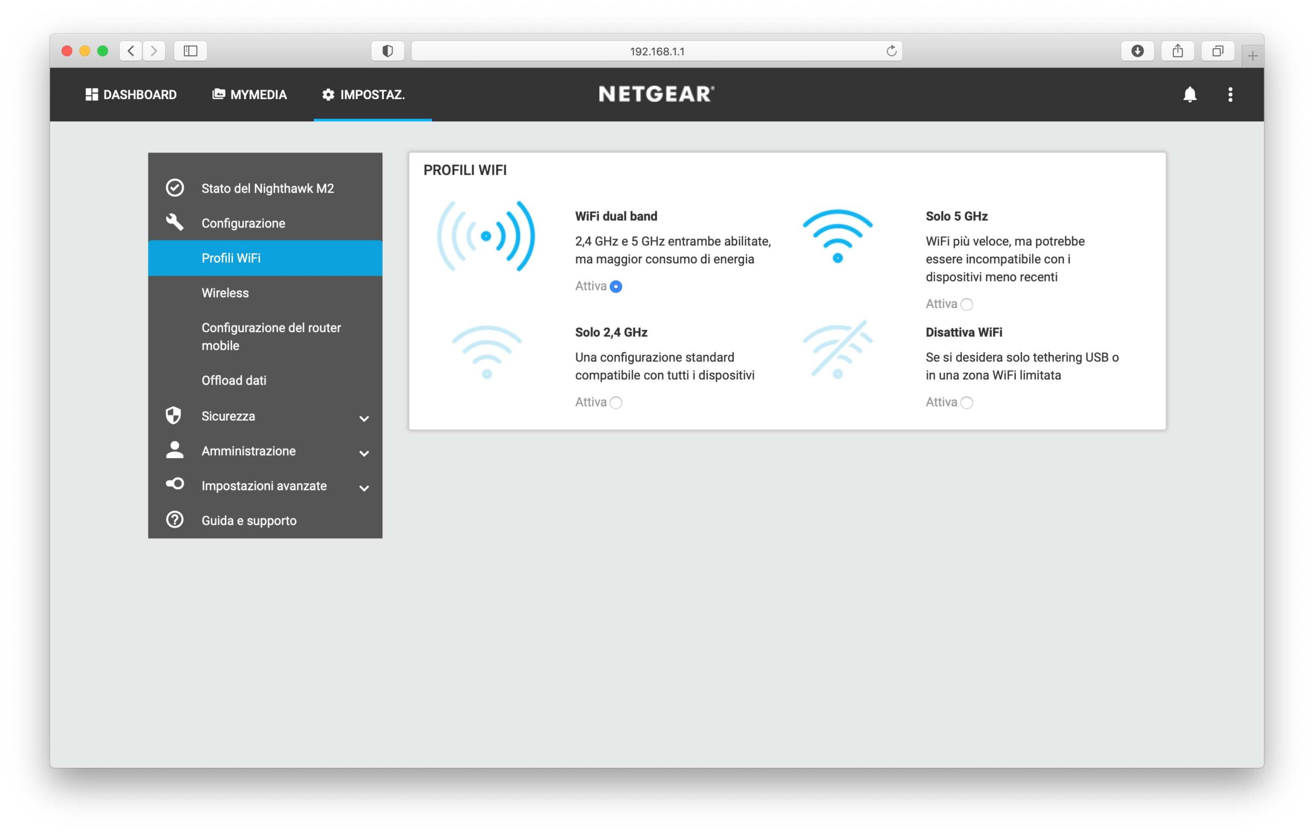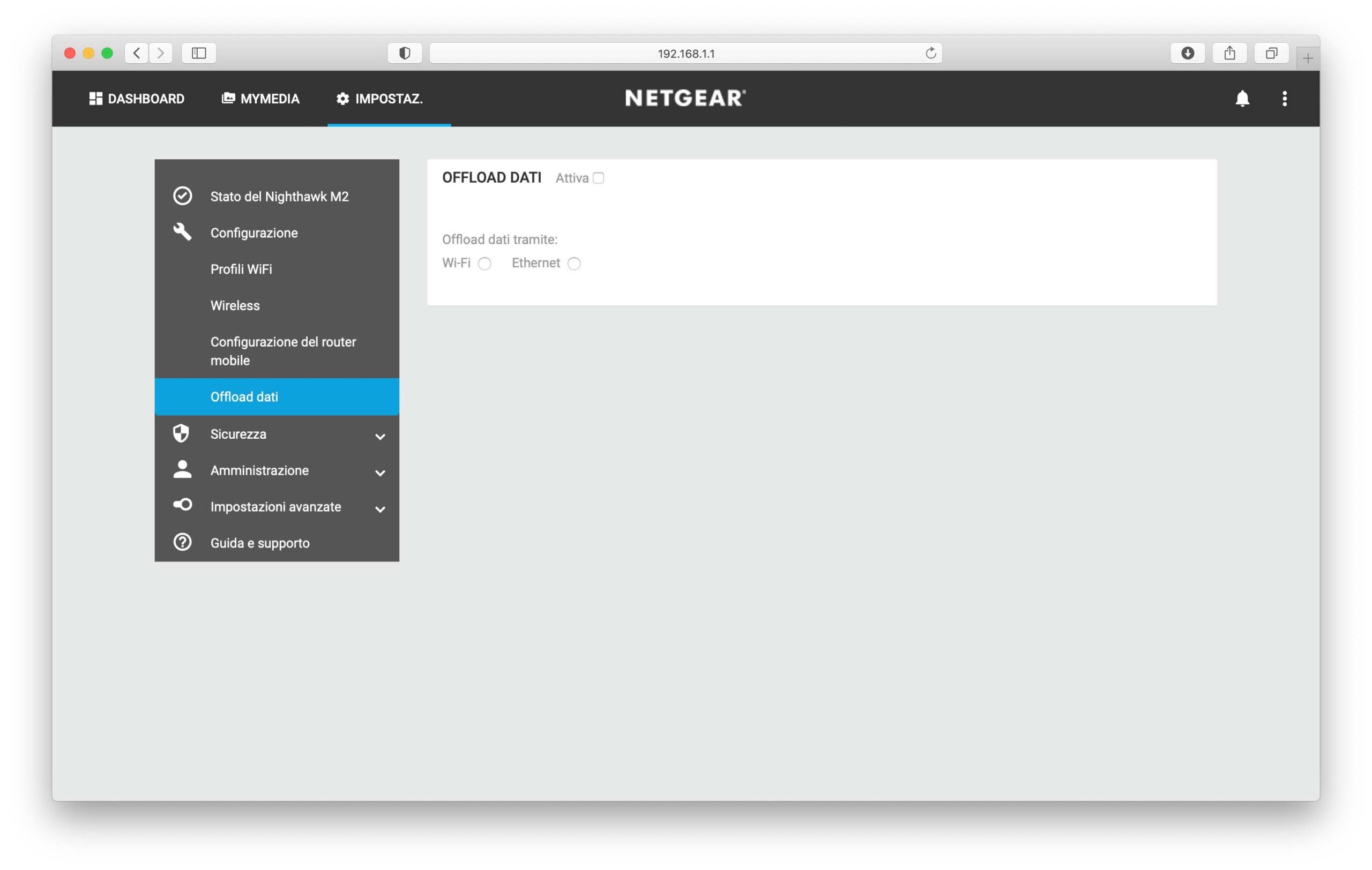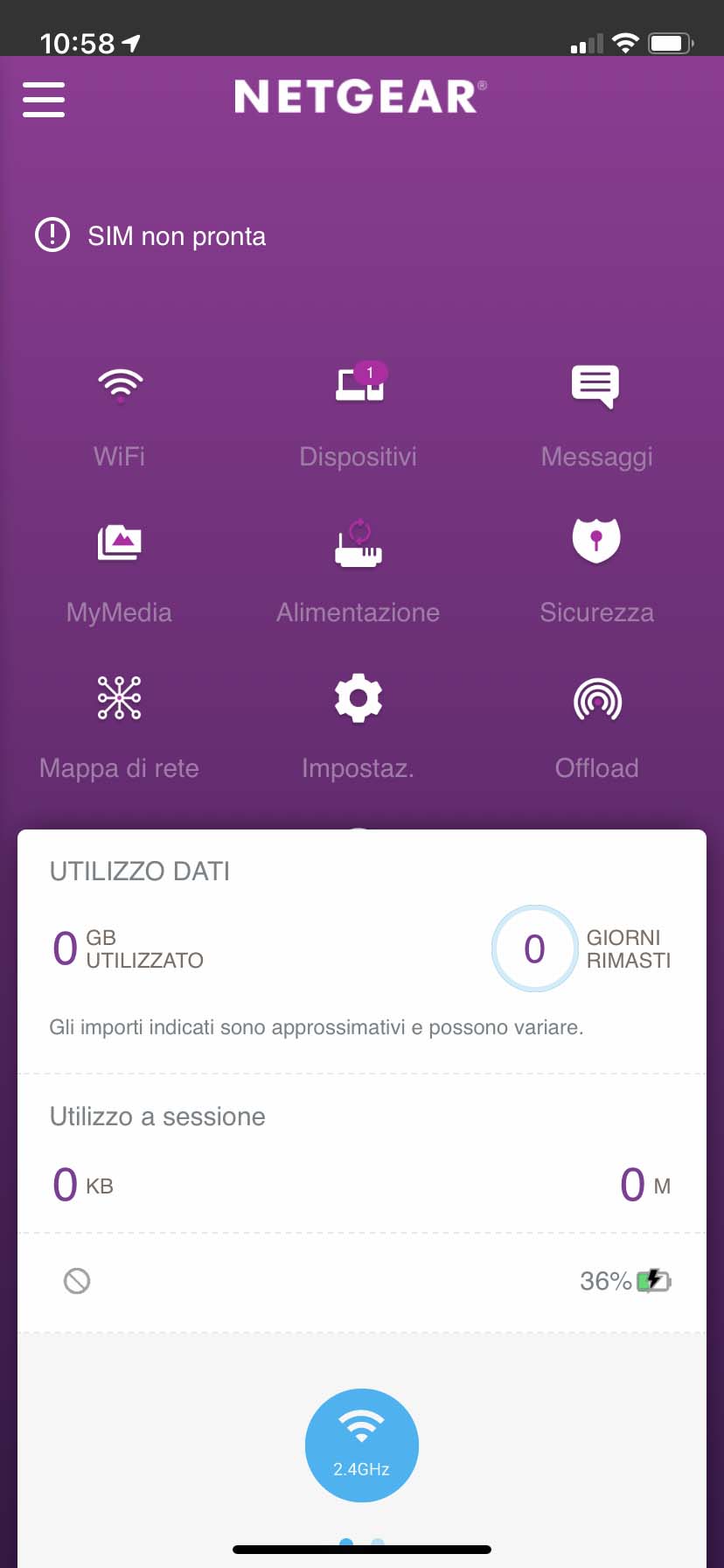 Il modo più semplice per configurare questo router mobile è l’uso dell’app Netgear Mobile (per dispositivi iOS e Android). Questa permette di modificare il nome della rete WiFi e la password; è possibile utilizzare anche per riprodurre e condividere contenuti multimediali e abilitare la funzione “Travel Router” on funzionalità di offload WiFi/Ethernet (connettersi a una rete esterna per ridurre la quantità di dati trasportata tramite banda cellulare).  È possibile caricare i file multimediali usando una chiavetta USB connessa al router mobile e visualizzare i file accedendo alla pagina principale del router e da qui sulla scheda “MyMedia”). Sono supportate unità formattate come NTFS, HFS+, HFS, FAT32 e FAT16.