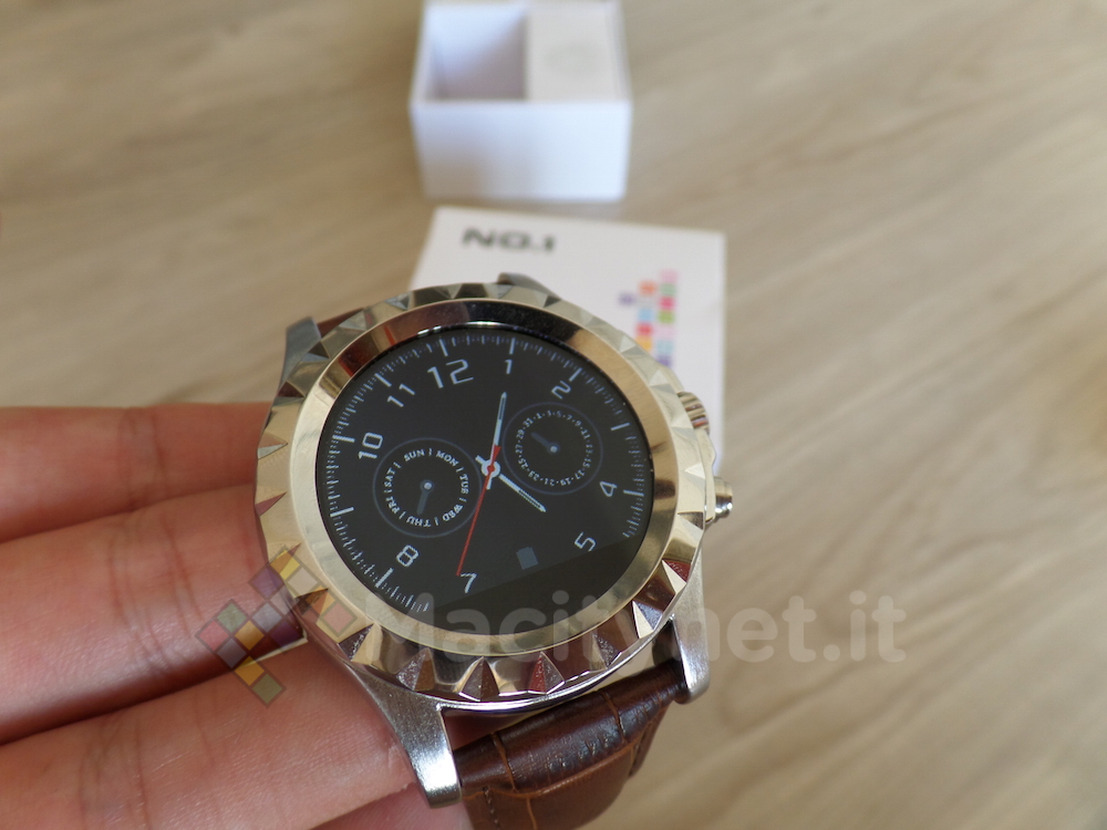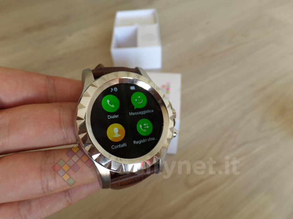 No.1 Sun S2, a differenza di molti cloni cinesi di Apple Watch, presenta un design originale, tondo come quello del Moto 360, ma non così minimale. Forse a voler trovare un “parente” del No.1 Sun S2 potremmo pensare ad LG G Watch R. Il display è da 1,33 pollici con una risoluzione di 240×240 e presenta la consueta banda nera in basso: lo schermo, pertanto, non è perfettamente rotondo, proprio come nel Moto 360. La risoluzione è però limitata e la griglia dei pixel risulta abbastanza evidente, anche se questo non incide in maniera drastica sulla leggibilità, anche sotto la luce diretta del sole. No.1 Sun S2 offre una duplice watch face: la prima analogica, che può variare tra tre diversi stili, mentre la seconda digitale, piuttosto scarna, formata dal solo orario su sfondo completamente nero. Quando si ruota il polso si avrà immediatamente visione della sola watch face analogica, con l’orario e la data, mentre con un click sul pulsante laterale si potrà accedere alla seconda faccia digitale, che immediatamente fornisce accesso a registro chiamate e messaggi.