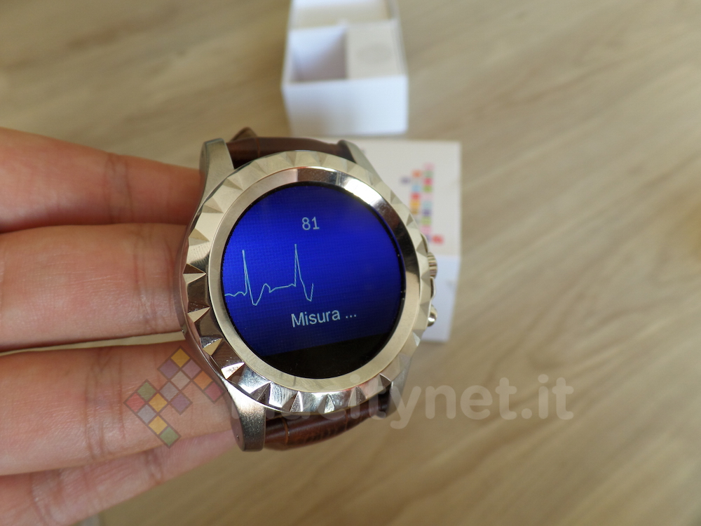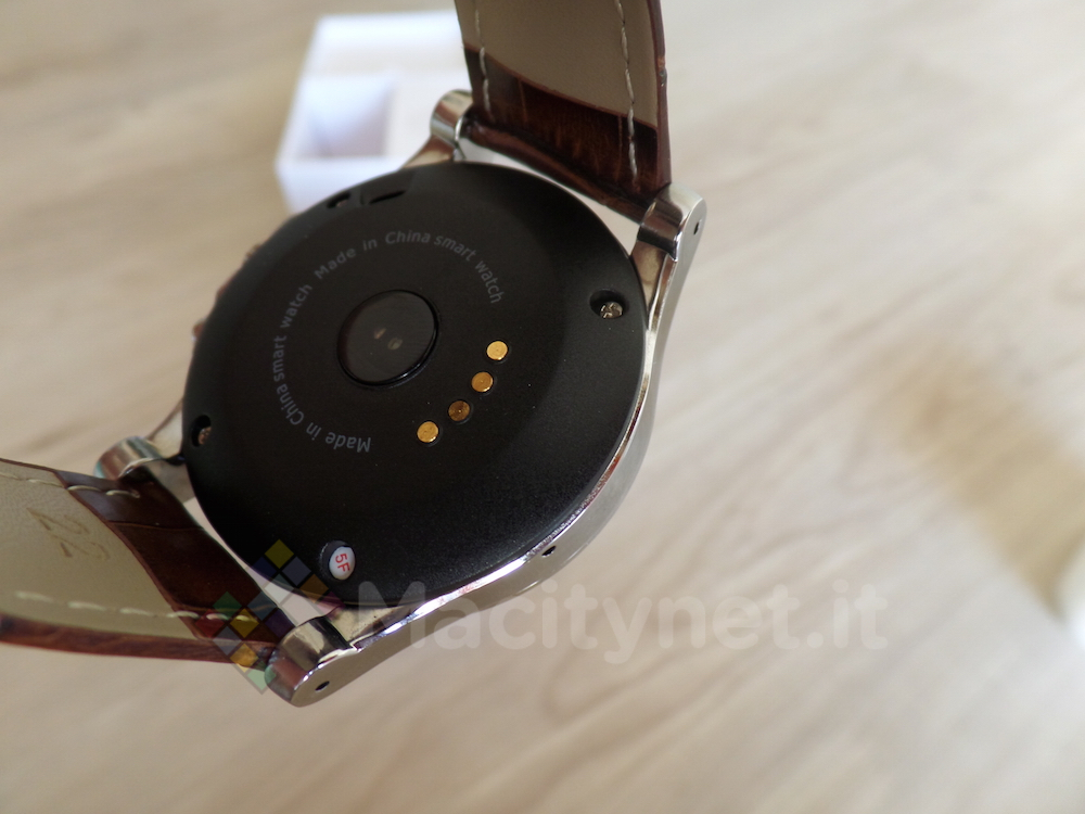 Al di là del tasto laterale appena menzionato, No.1 Sun S2 presenta anche un altro tasto “simulato”, di dimensioni maggiori, all’interno del quale è però incastonata una camera, sulle cui caratteristiche tecniche si tornerà in seguito. Sul retro, invece, similmente ad Apple Watch, è presente il sensore per la misurazione del battito cardiaco. Durante i nostri test ha sempre fornito risultati credibili anche se alle volte è stato necessario ripetere il test per avere risultati più precisi. In modalità EGC lo smartwatch misura continuativamente le pulsazioni del cuore, mentre avviando la funzione Misura Battito sarà fornita una lettura singola, come avviene sia su Apple Watch, sia sulla maggior parte dei dispositivi Android Wear. La funzione EGC risulta particolarmente interessante per gli sportivi, che durante la sessione di allenamento desiderano essere informati delle pulsazioni, senza dover necessariamente avviare l’app misurazione. Anche se i dati forniti, ovviamente, non possono avere alcuna valenza medica e devono essere assunti con le dovute cautele e non è possibile valutare con sicurezza la precisione dei dati forniti, le misurazioni ci sono apparse generalmente consone all’attività fisica svolta.
