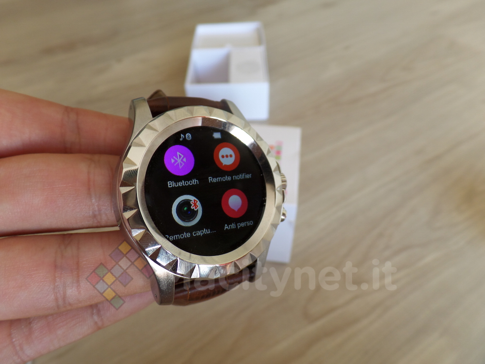 Come già anticipato, l’orologio integra una camera nel quadrante. Si tratta, ovviamente, di un sensore a risoluzione molto modesta, in grado di scattare foto a risoluzione di solo 240×240. Le foto possono essere visualizzate direttamente sullo schermo dell’orologio, oppure inviate tramite bluetooth allo smartphone abbinato.