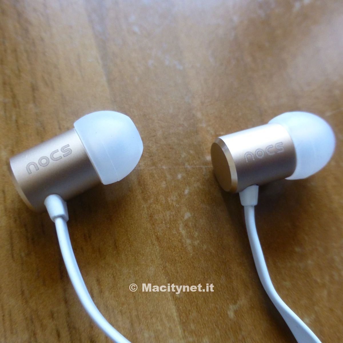 Finora non abbiamo parlato dell’isolamento acustico, anche questo notevole. Grazie alle 5 guarnizioni in silicone incluse ogni utente può provare e scegliere quelle più adatte al proprio orecchio: l’adesione perfetta è indispensabile per fissare bene gli auricolari e non perderli durante gli spostamenti ma anche per assicurare una riproduzione audio migliore infine per isolare i rumori esterni. Una volta scelta e applicata la guarnizione per noi Nocs 500 Aluminum offre un elevato isolamento passivo dai rumori esterni: basta avviare la riproduzione audio anche a volume contenuto per escludere completamente il mondo esterno. Non riusciremo nemmeno a sentire il parlato delle persone a noi vicine: una benedizione per chiudere fuori il rumore del treno, della metro, del traffico ma bisogna prestare attenzione. In bicicletta o camminando dobbiamo ricordare che non potremo udire praticamente nulla, nemmeno un’auto vicina.