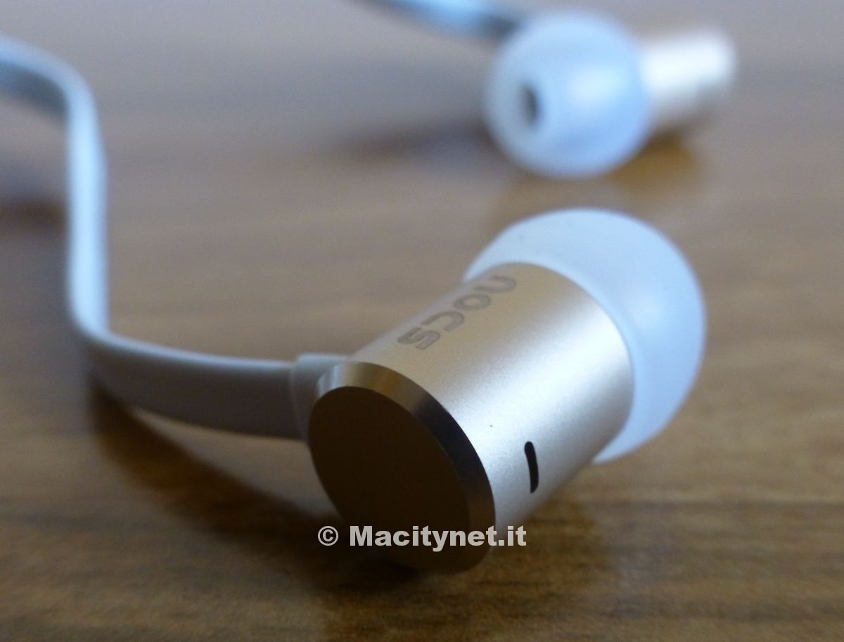 La parte posteriore è smussata e lucida, il tutto è realizzato con macchine di precisione a controllo numerico, la stessa tecnica utilizzata da Apple per costruire lo chassis di iPhone. L’alluminio dello chassis è ulteriormente sabbiato e anodizzato, rendendo così il tutto non solo elegante ma anche resistente ai graffi. Per completare l’opera gli auricolari sfoderano un design minimal chic e colorazioni che rendono Nocs NS500 Aluminum un complemento perfetto per tutti i computer e soprattutto i dispositivi mobile della Mela. La parentesi su materiali e design è d’obbligo considerando le notevoli affinità con l’universo Apple, in ogni caso si tratta di un di auricolari, così passiamo subito ad esaminare caratteristiche e riproduzione audio, anche questa in grado di sorprendere.