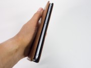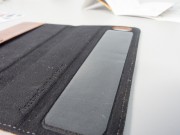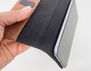 Notevole il sistema con cui  la custodia si fissa al dispositivo. Piuttosto che inserire l’iPhone in una classica custodia ad incastro, la Nodus sfrutta un sistema a microaspirazione per trattenere il telefono. Sostanzialmente è una striscia che aderisce al dorso attaccandosi al dispositivo ma senza colla, quindi non lascia alcun residuo nel momento in cui si decide di togliere il telefono: un’operazione che comunque può essere effettuata soltanto esercitando una certa forza. Anche l’aletta interna ha una piccola porzione di questo particolare materiale che si fissa al display – anche se qualche volta tende ad aprirsi – mantenendo chiusa la copertina quando non utilizziamo il dispositivo.