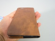 Il primo aspetto che balza all’occhio, ma sarebbe meglio dire ai tre sensi: vista, olfatto e tatto, è la differenza dal “plasticume” che costella negozi e negozietti on line e fisici che si trova in giro. Si tratta infatti di una custodia in pelle italiana di ottima qualità, morbida al tatto, che promana un profumo caratteristico della vera pelle e che di presenta rifinita con cura ammirevole del dettaglio su materiali naturali e con tintura che evidenzia la trama naturale della pelle, piacevolemente imperfetta  nel colore come solo un materiale naturale può e deve essere.